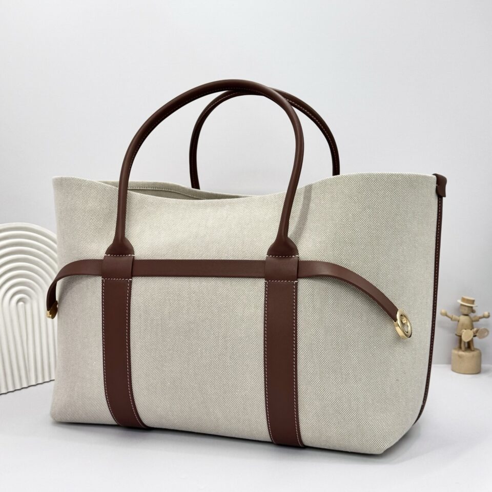 Prada Linen Blend Leather Tote Bag