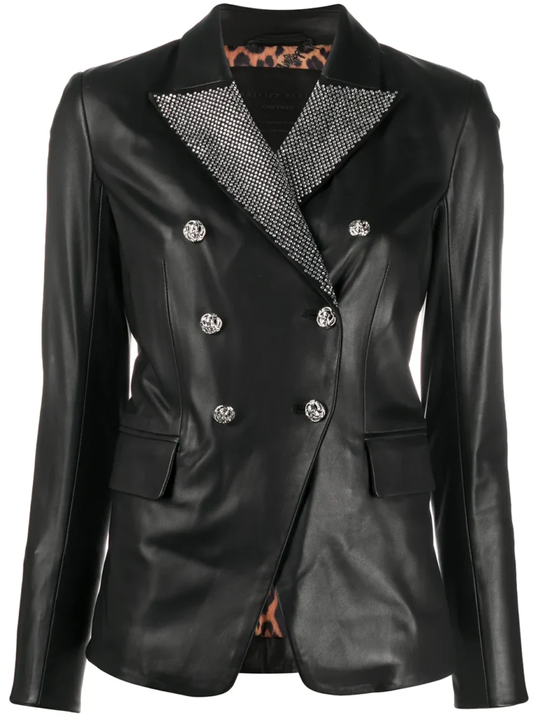 Philipp Plein Embellished Lapel Leather Blazer