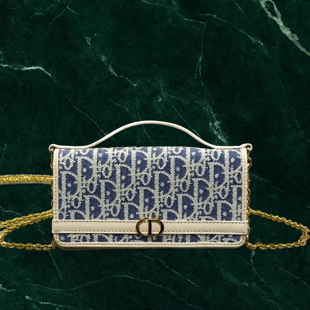 - Logo: “CD” clasp on the flap