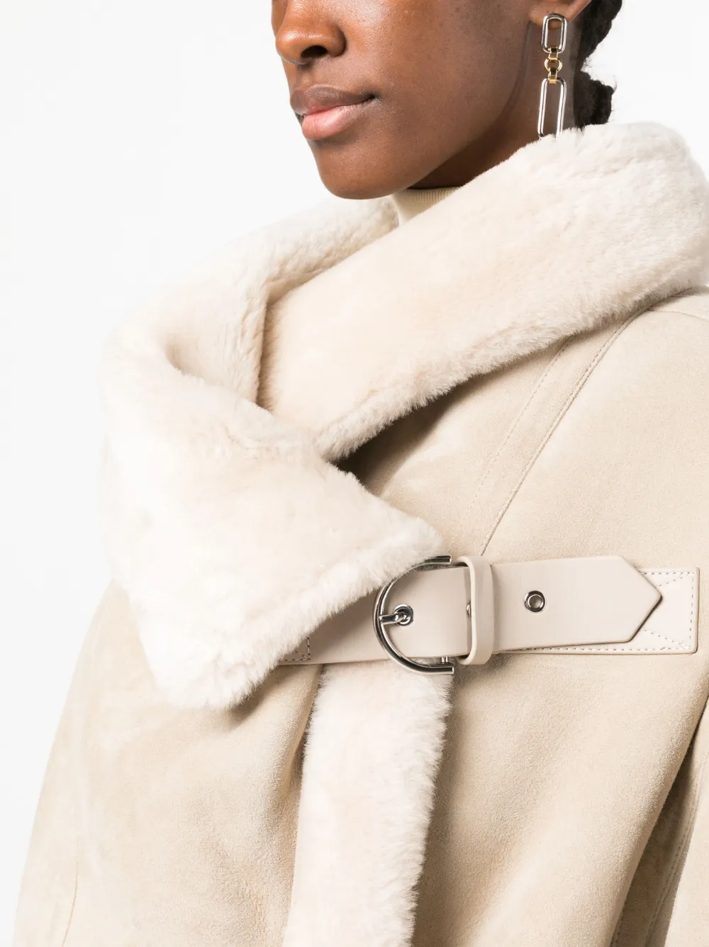 Wide shearling collar with fold-over design