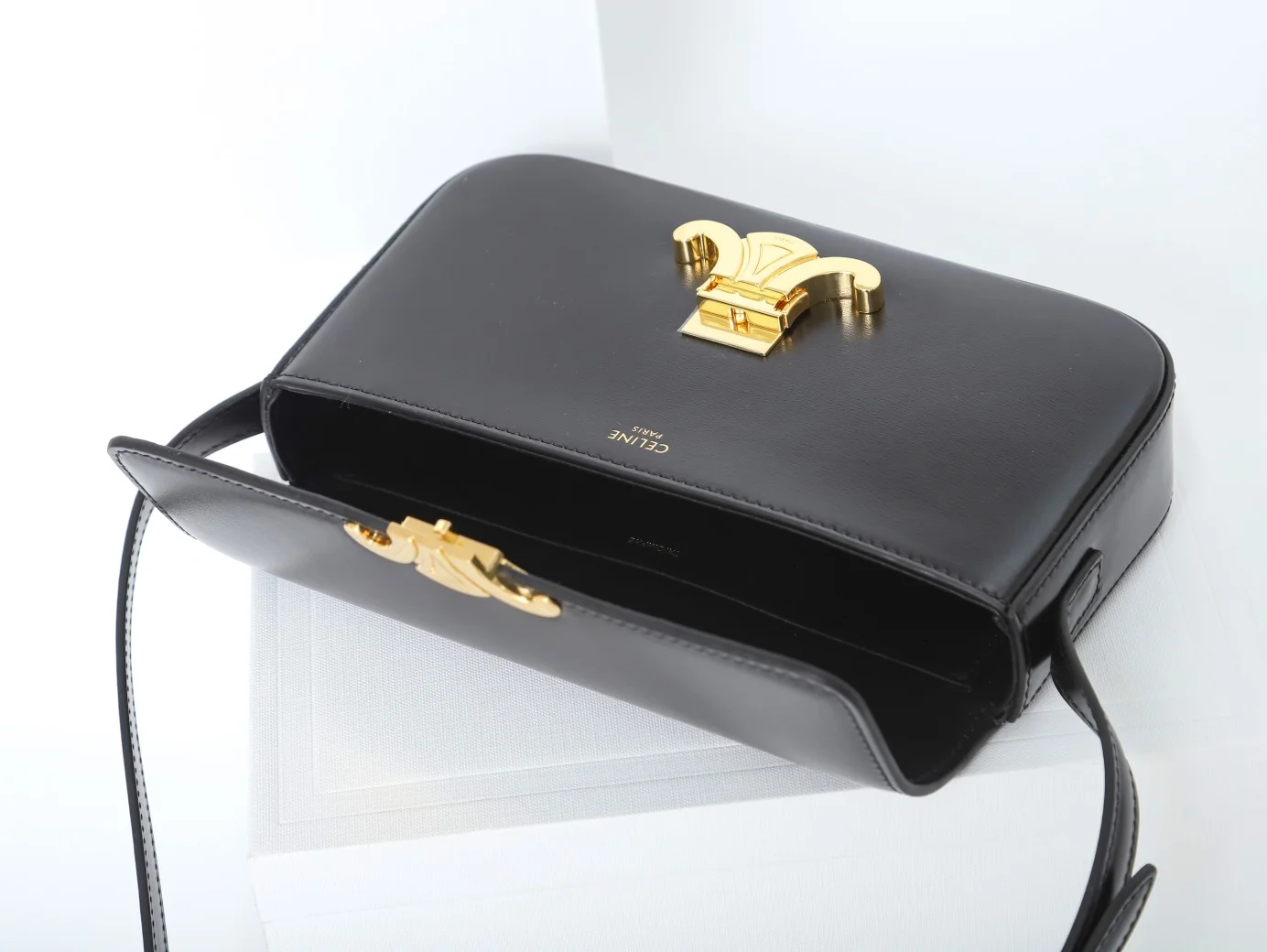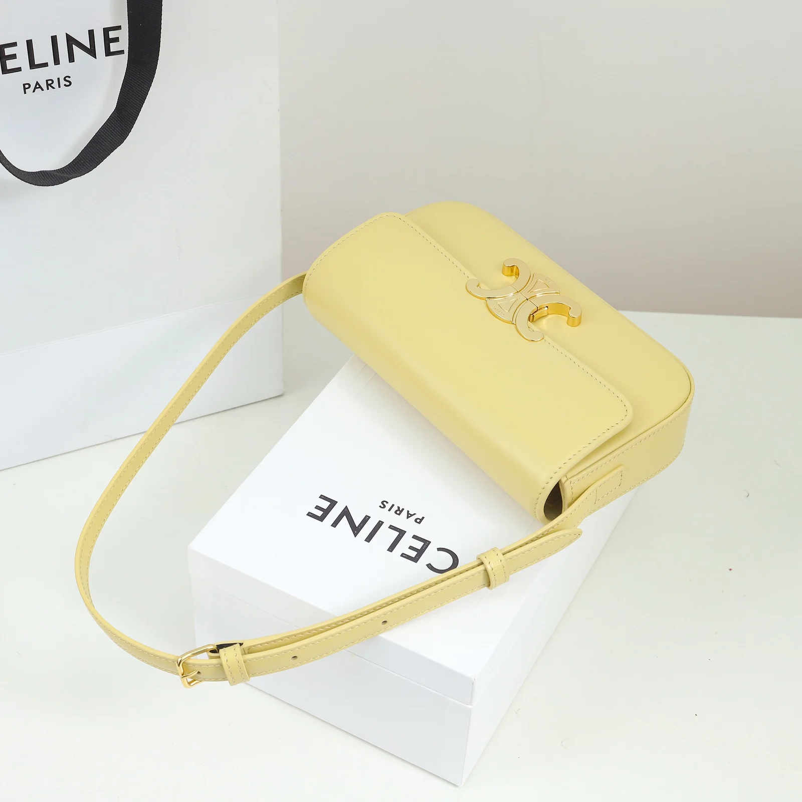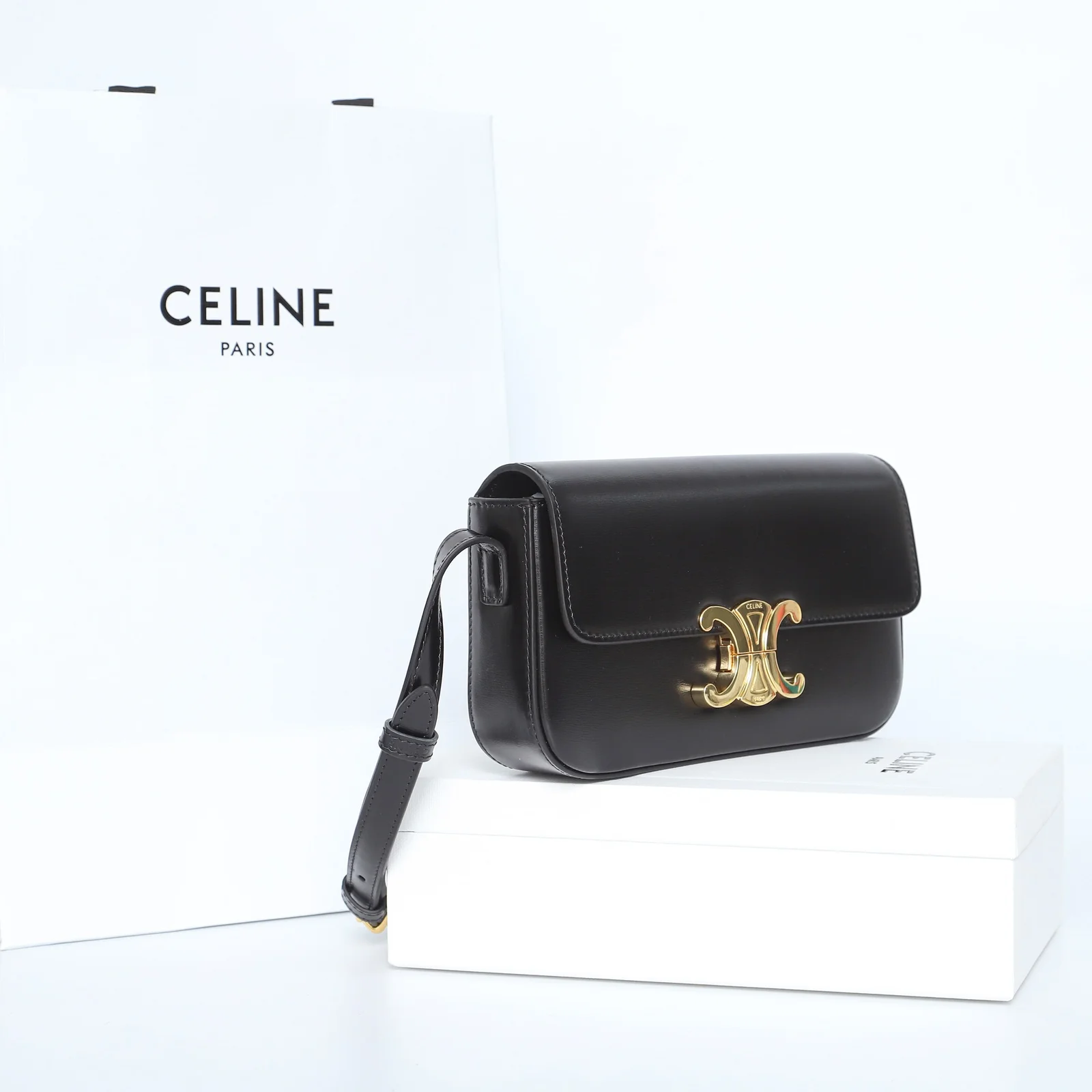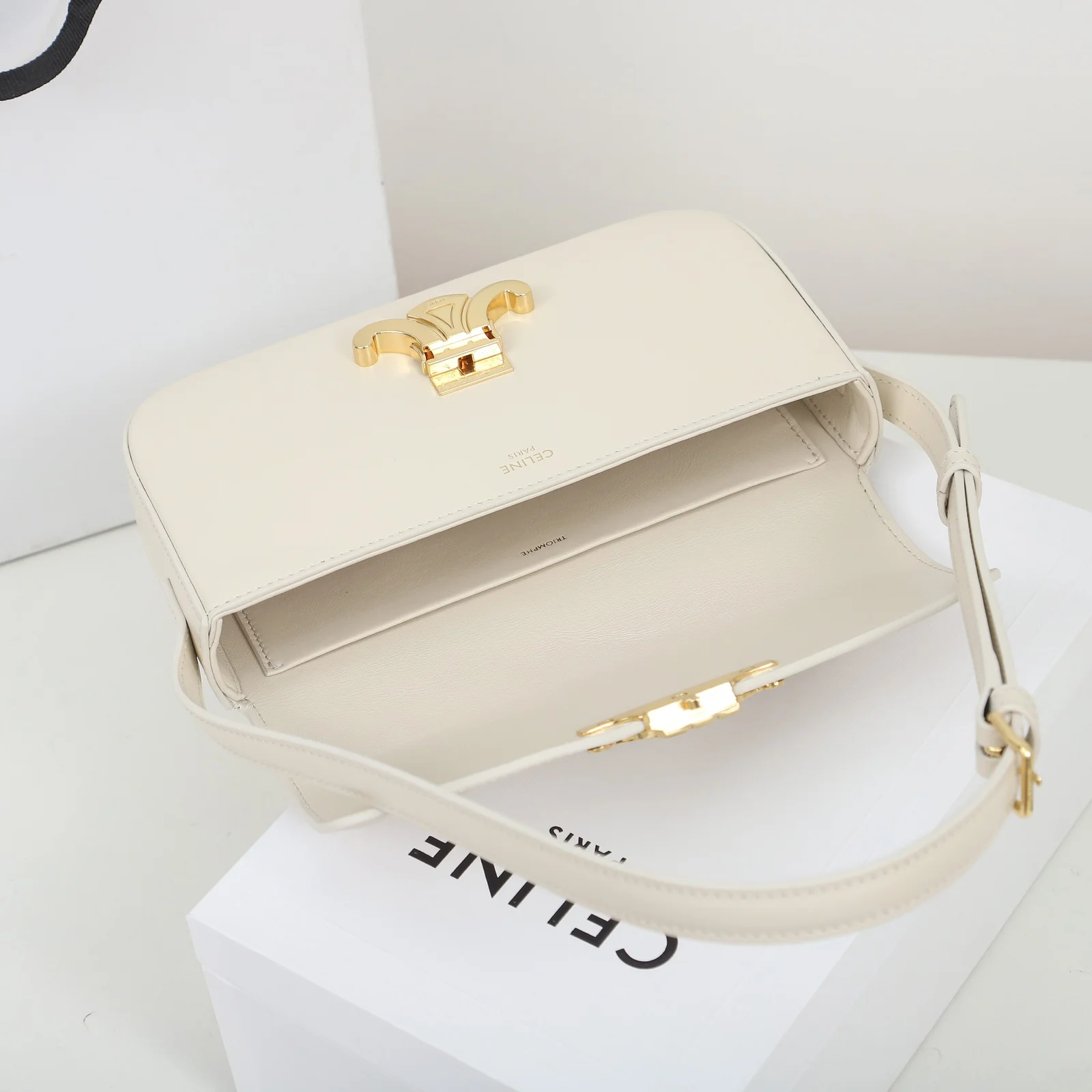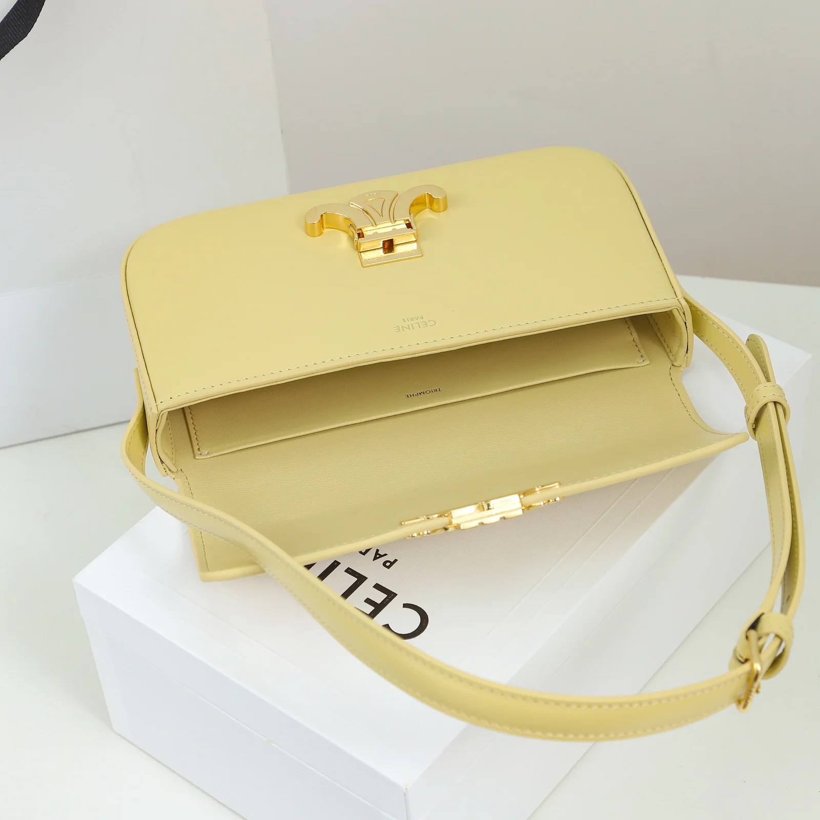 - Hardware: Shiny gold-finish Triomphe clasp