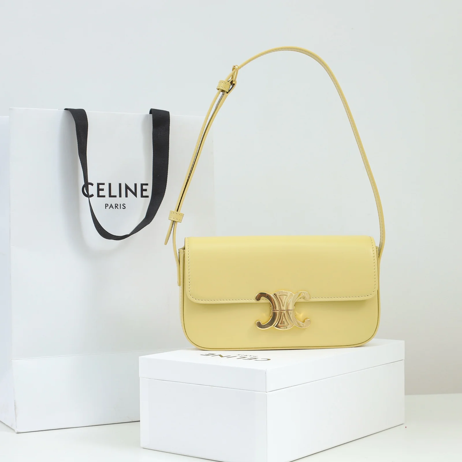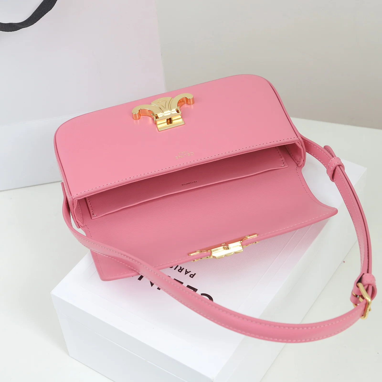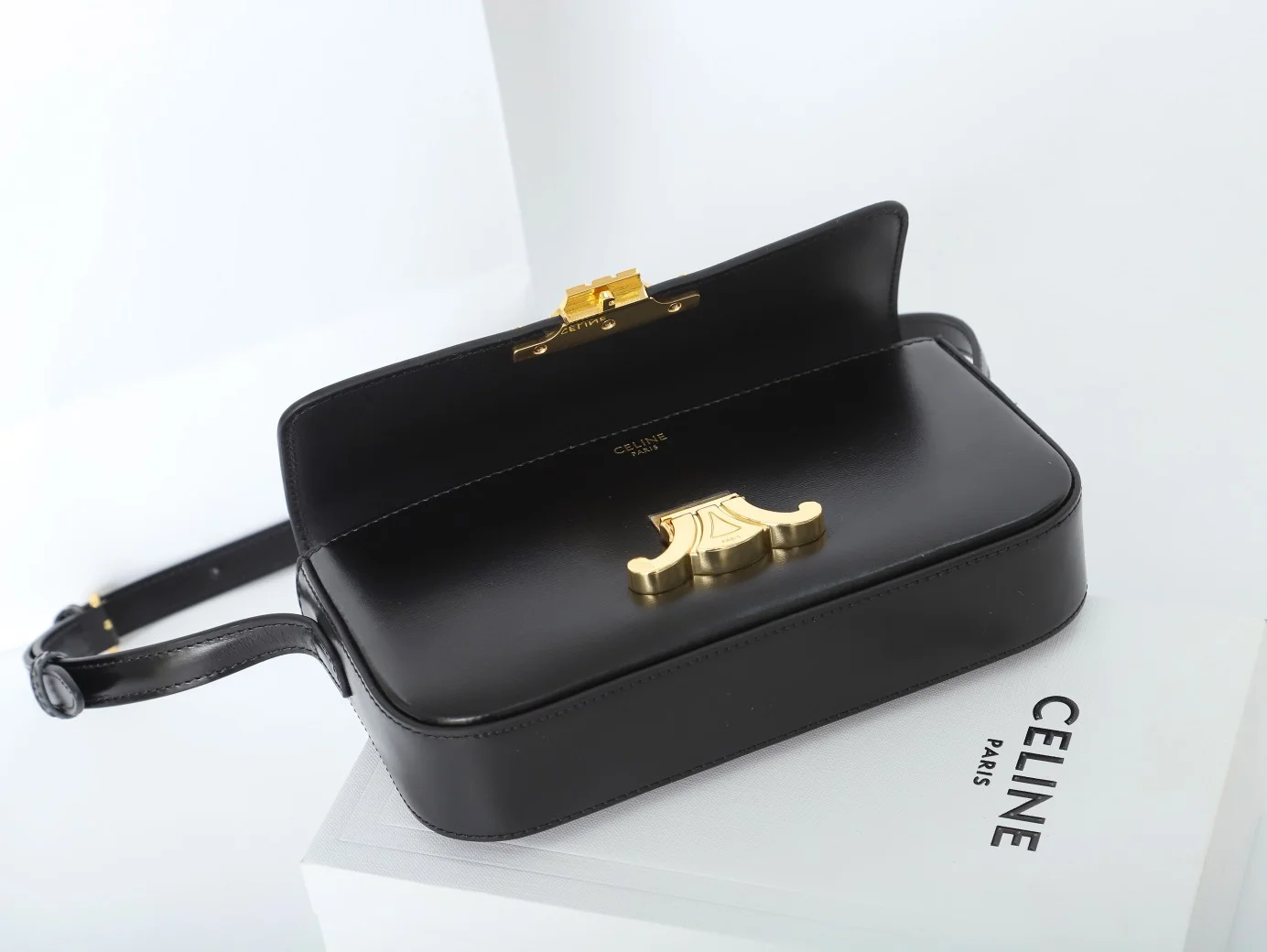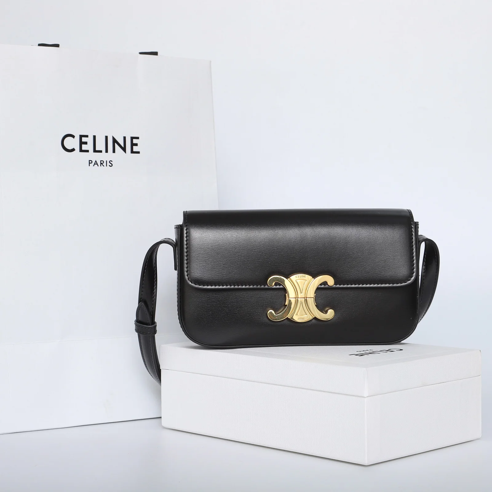 - Hardware: Shiny gold-finish Triomphe clasp