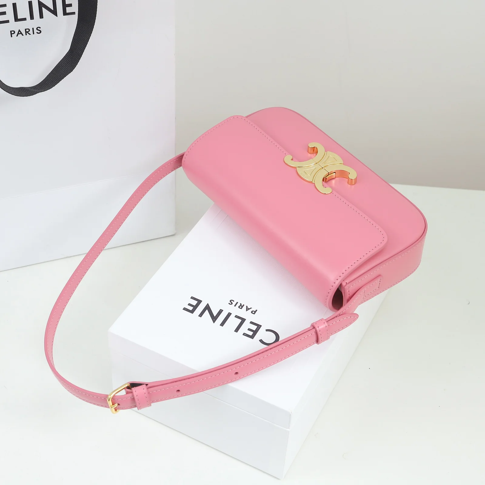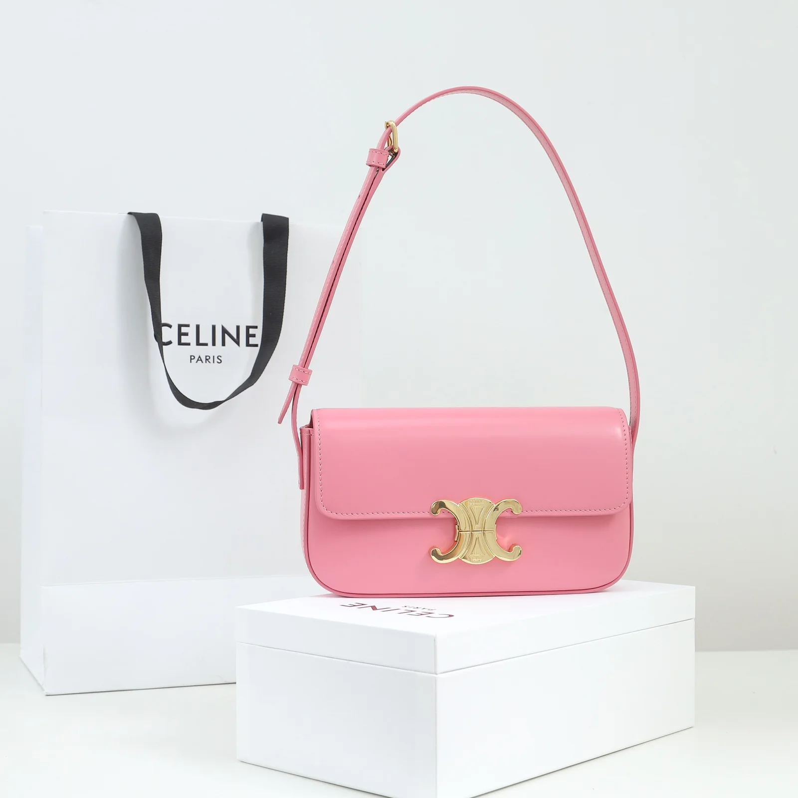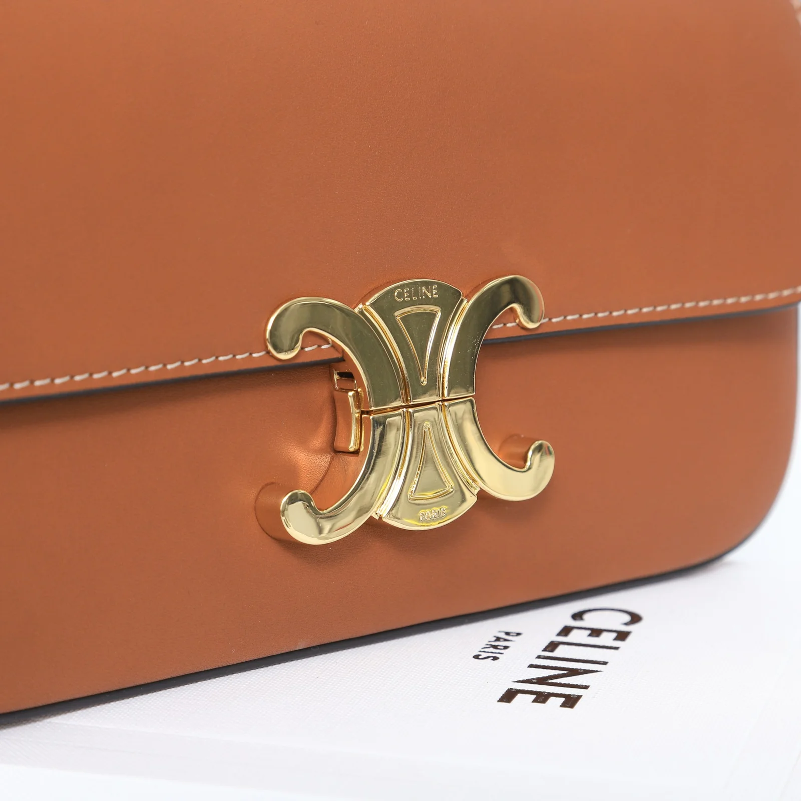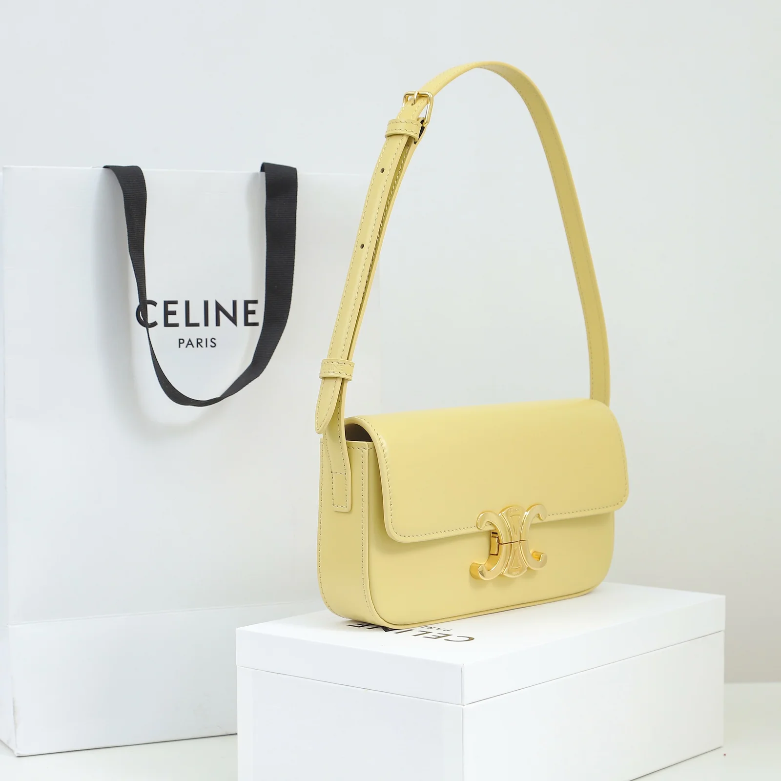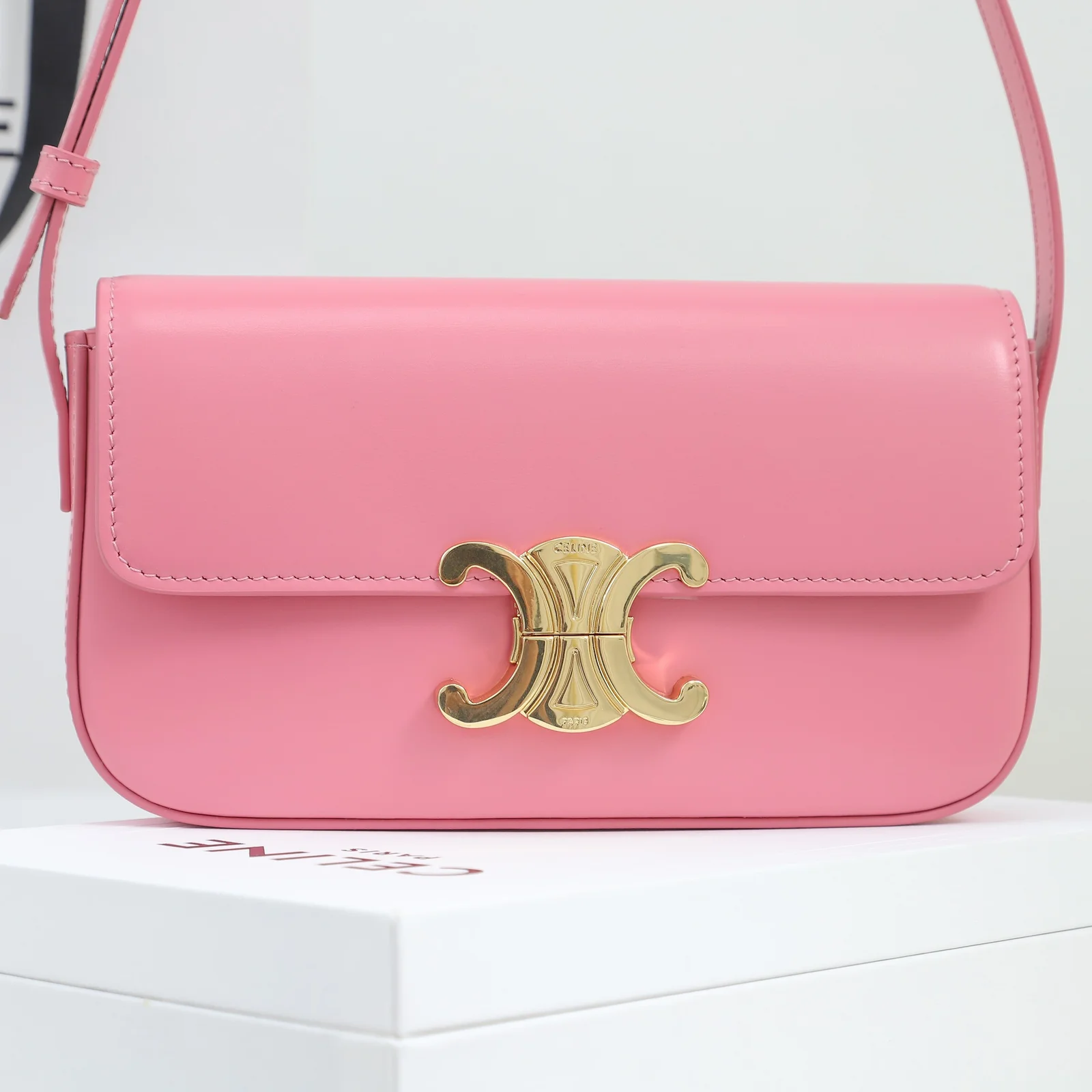 - Hardware: Shiny gold-finish Triomphe clasp