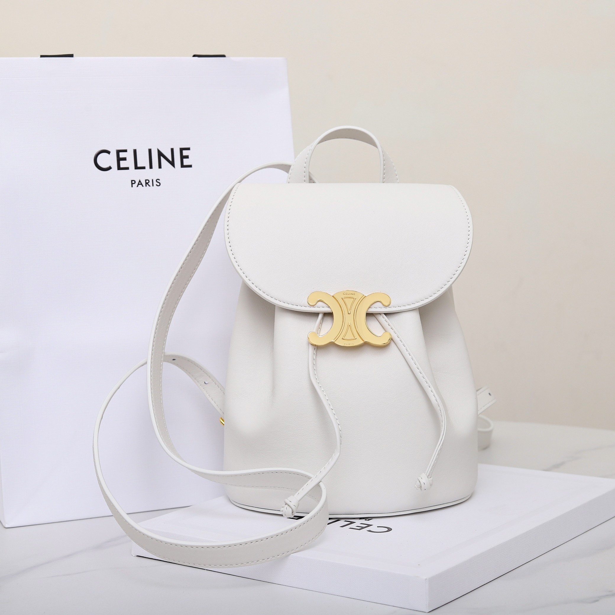 - Hardware: Gold-finish with the Triomphe emblem on the flap