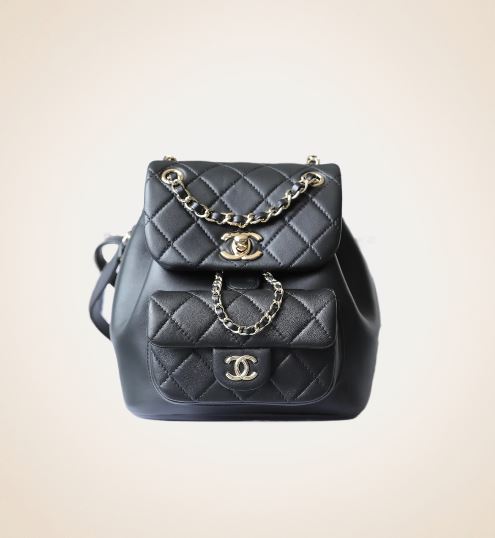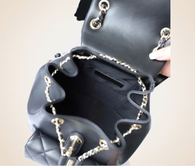 Chanel Small Duma Drawstring Backpack in Black Lambskin