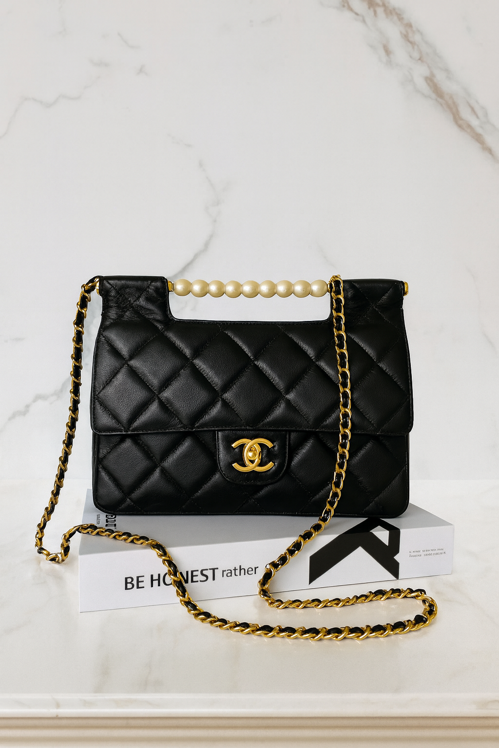 - Detail: Iconic CC turn-lock with a single strand of pearls as the top handle