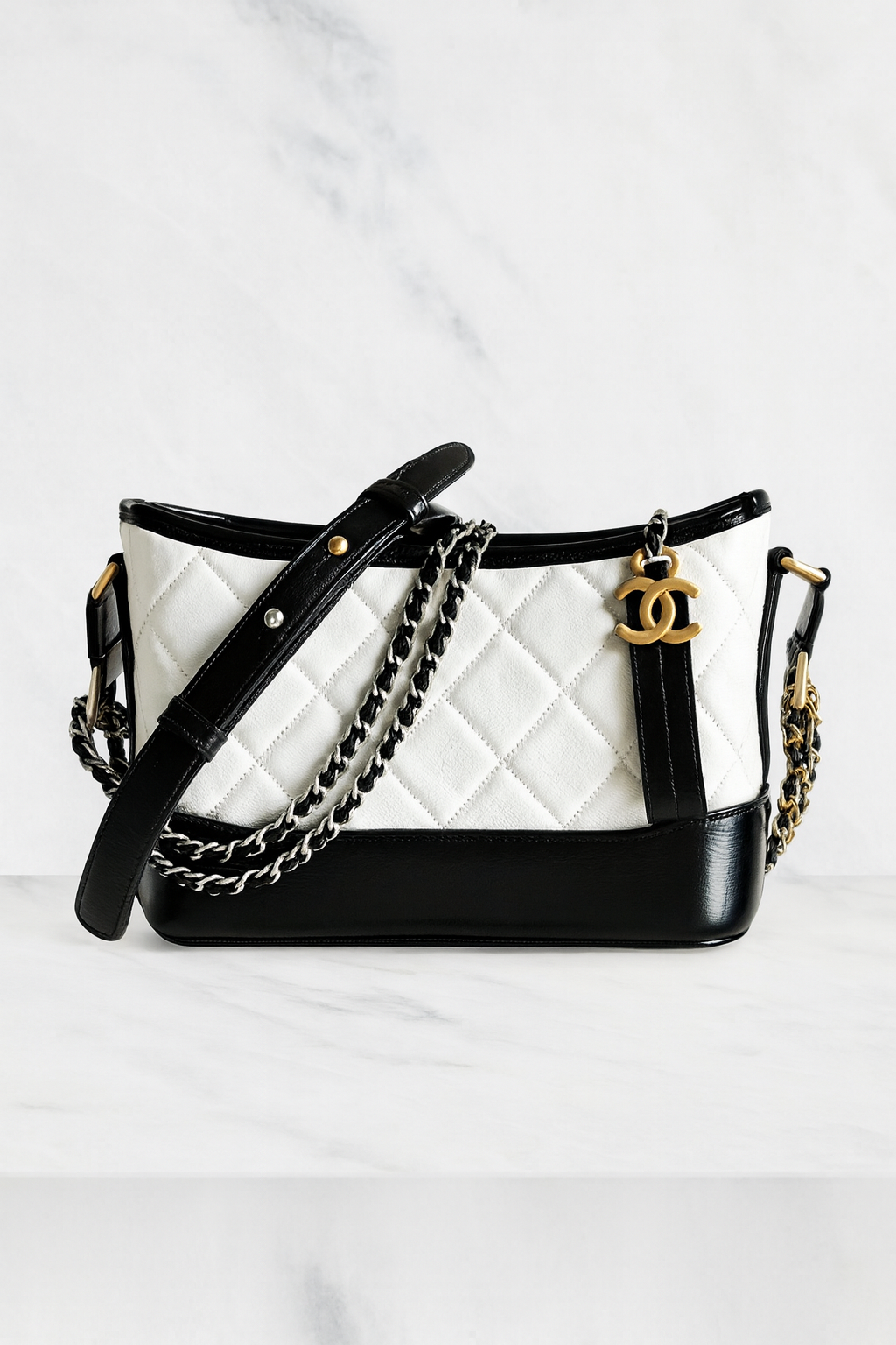 Chanel Gabrielle Small Hobo Bag in White and Black Aged Calfskin with Mixed Hardware