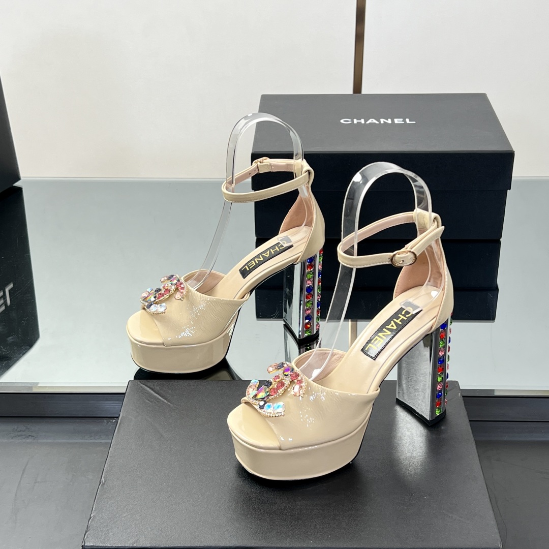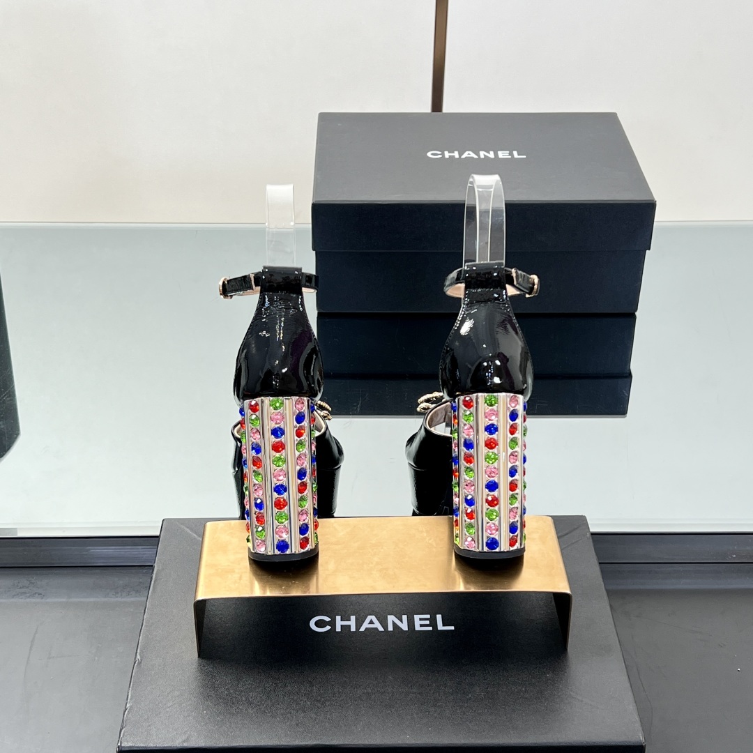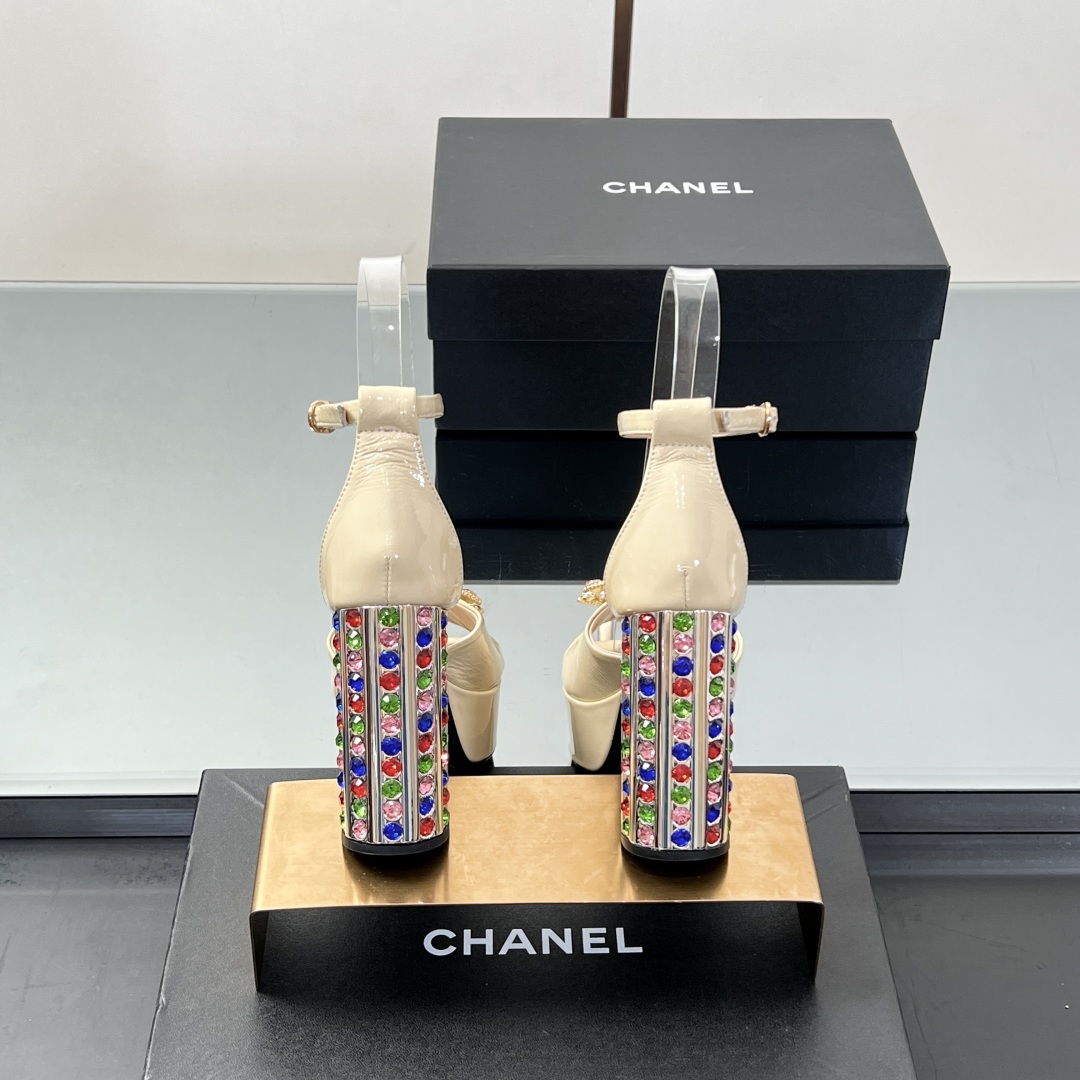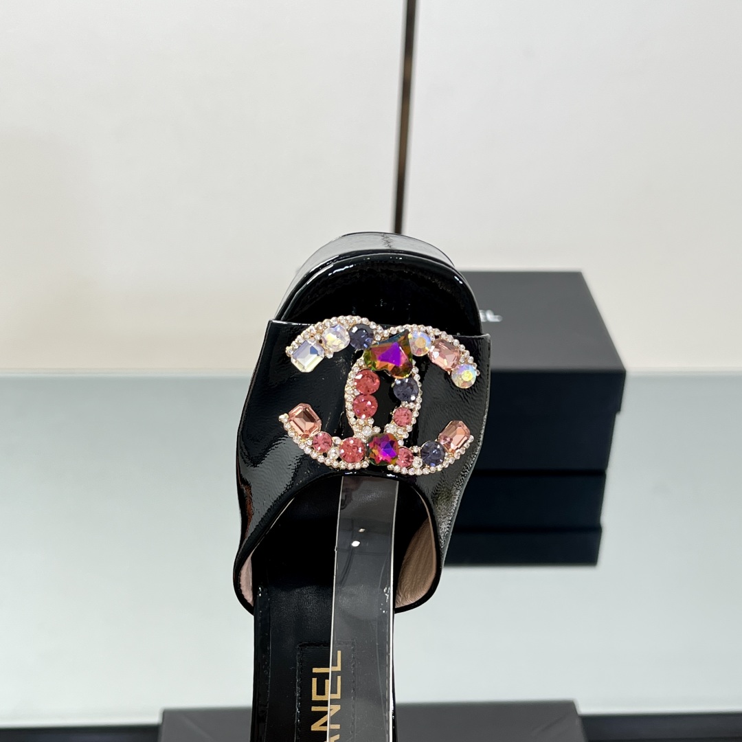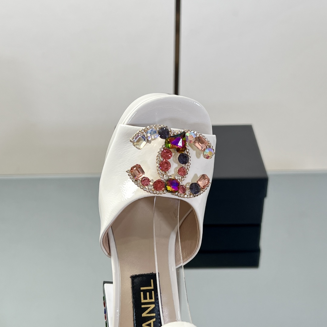 Logo Detail: CC logo formed with jewel embellishments on the toe strap and branded insole