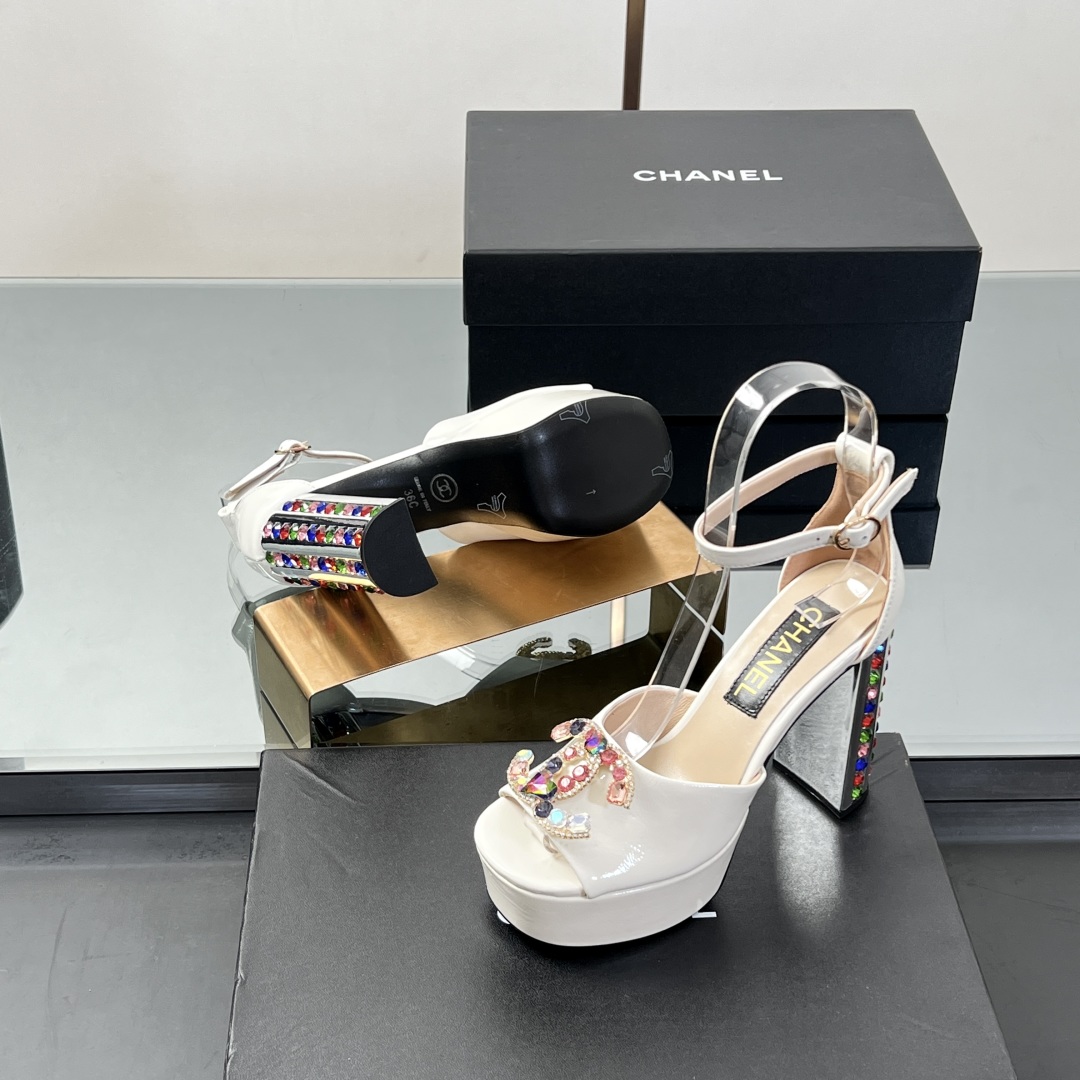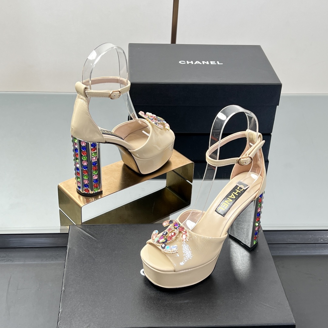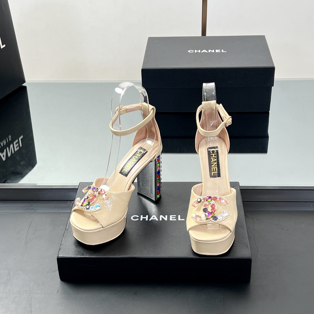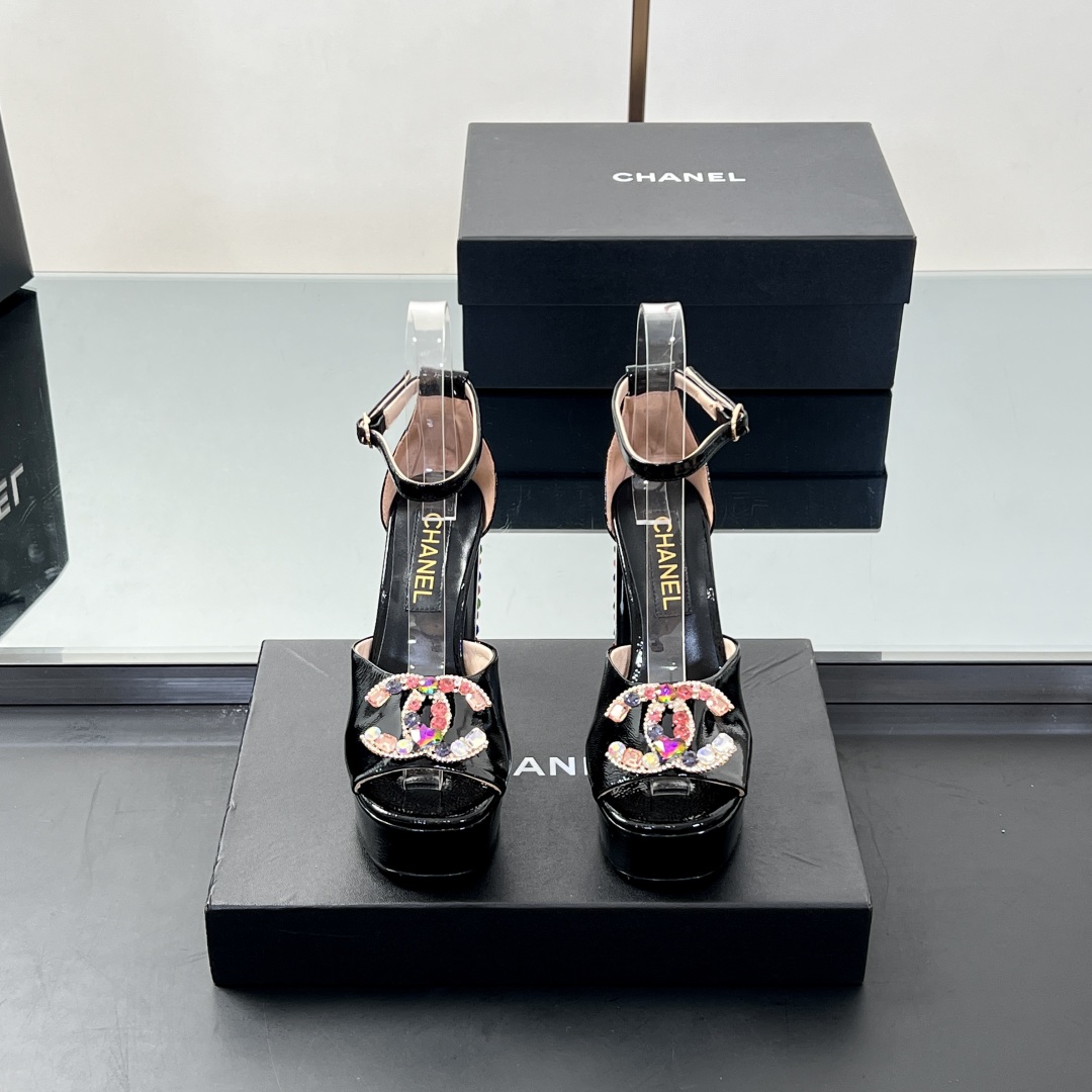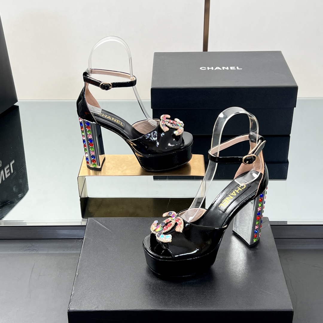 Logo Detail: CC logo formed with jewel embellishments on the toe strap and branded insole
