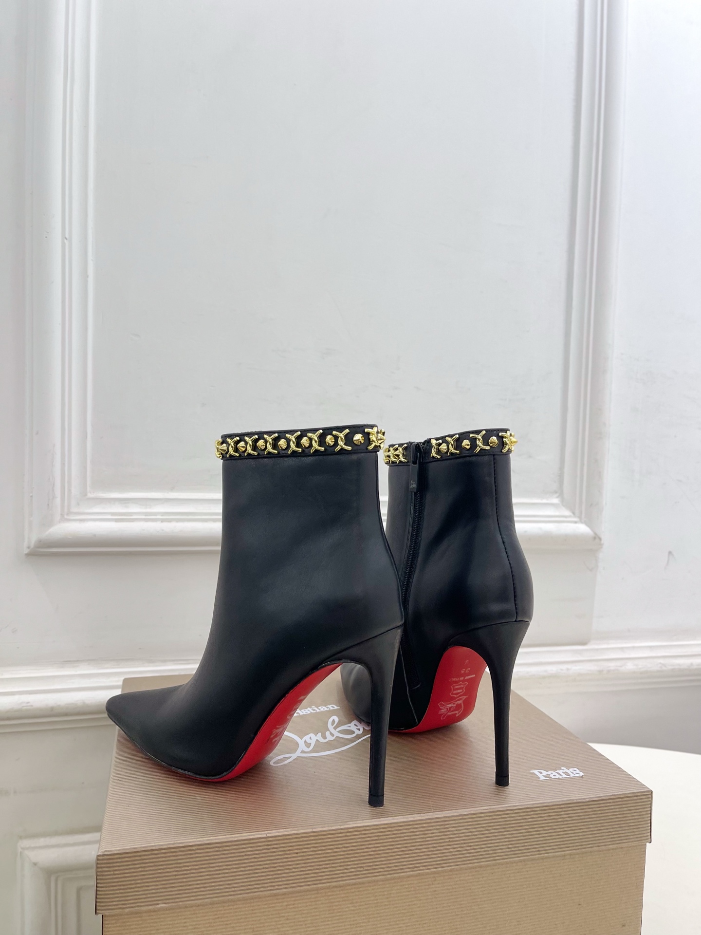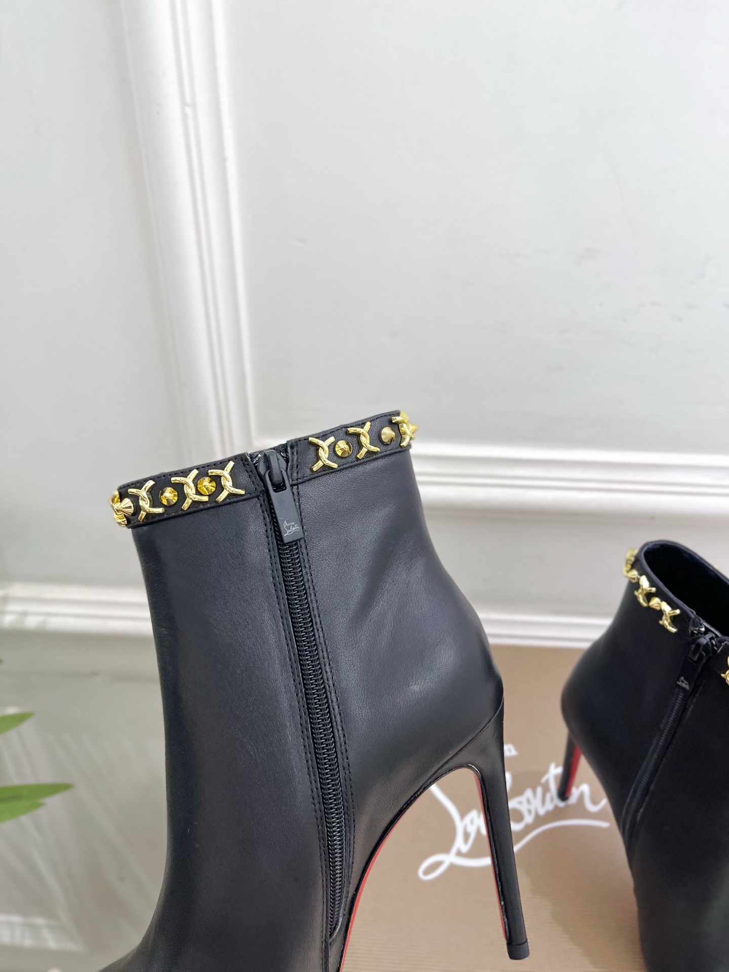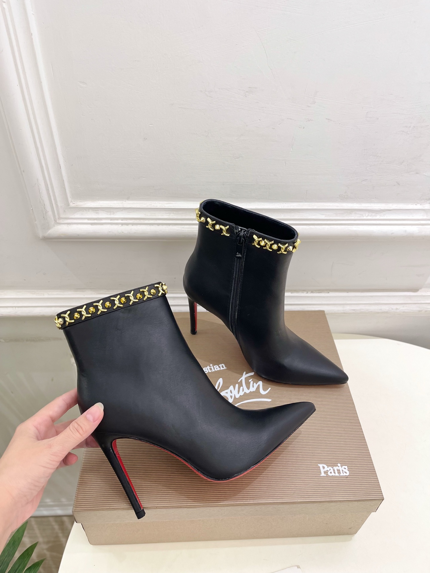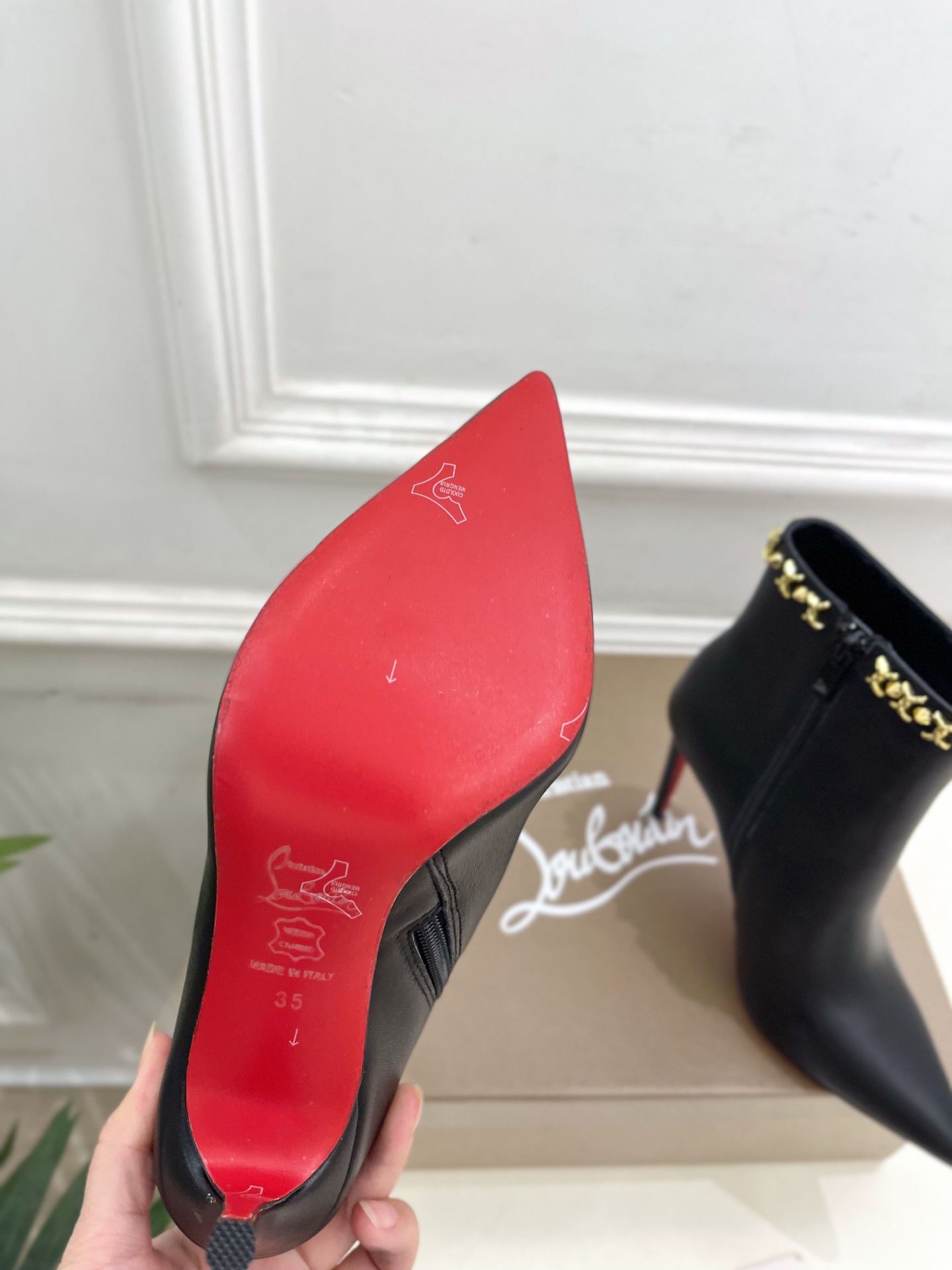 - A sophisticated upgrade to the classic black ankle boot — modern, striking, and unmistakably Louboutin.