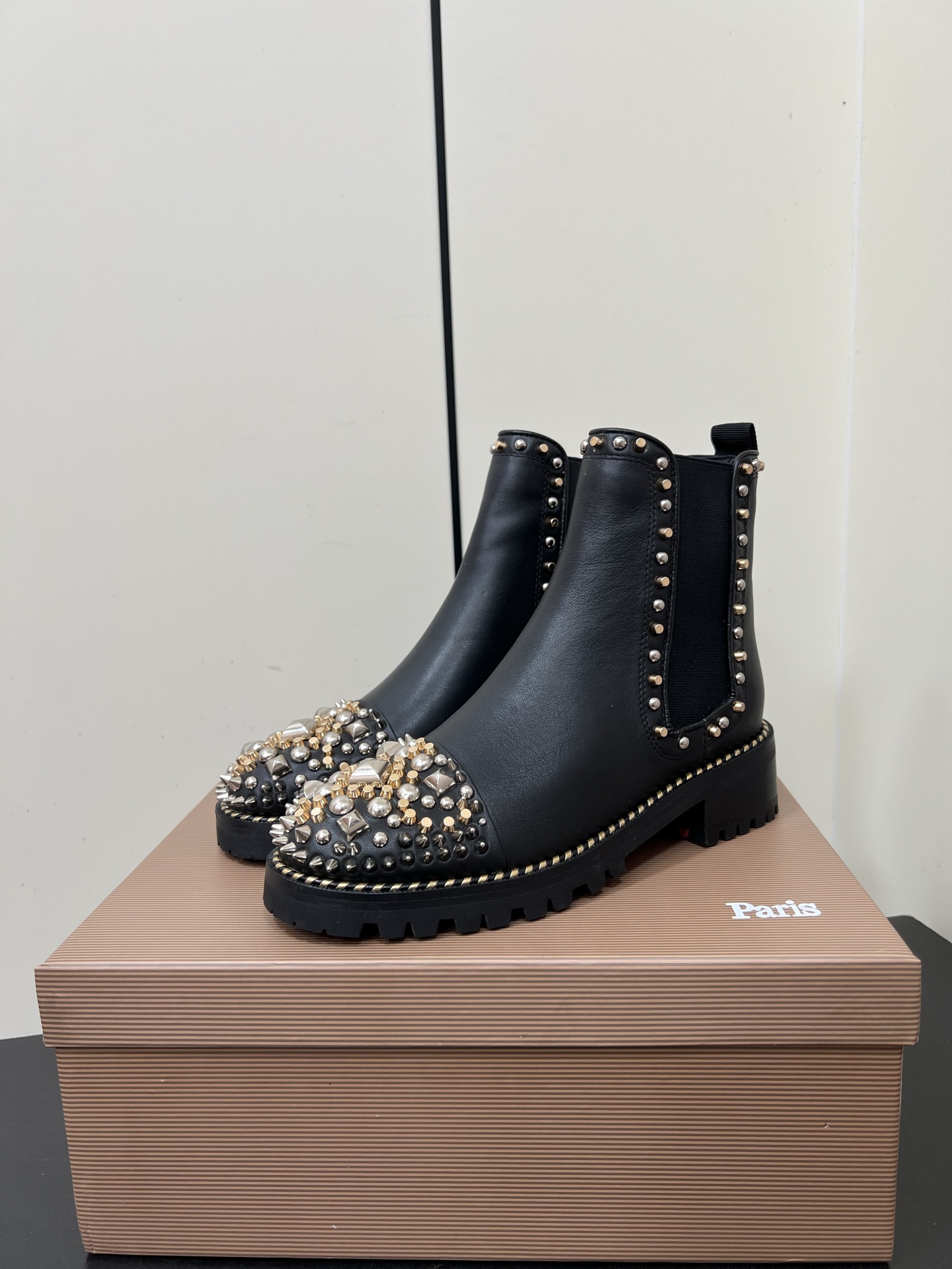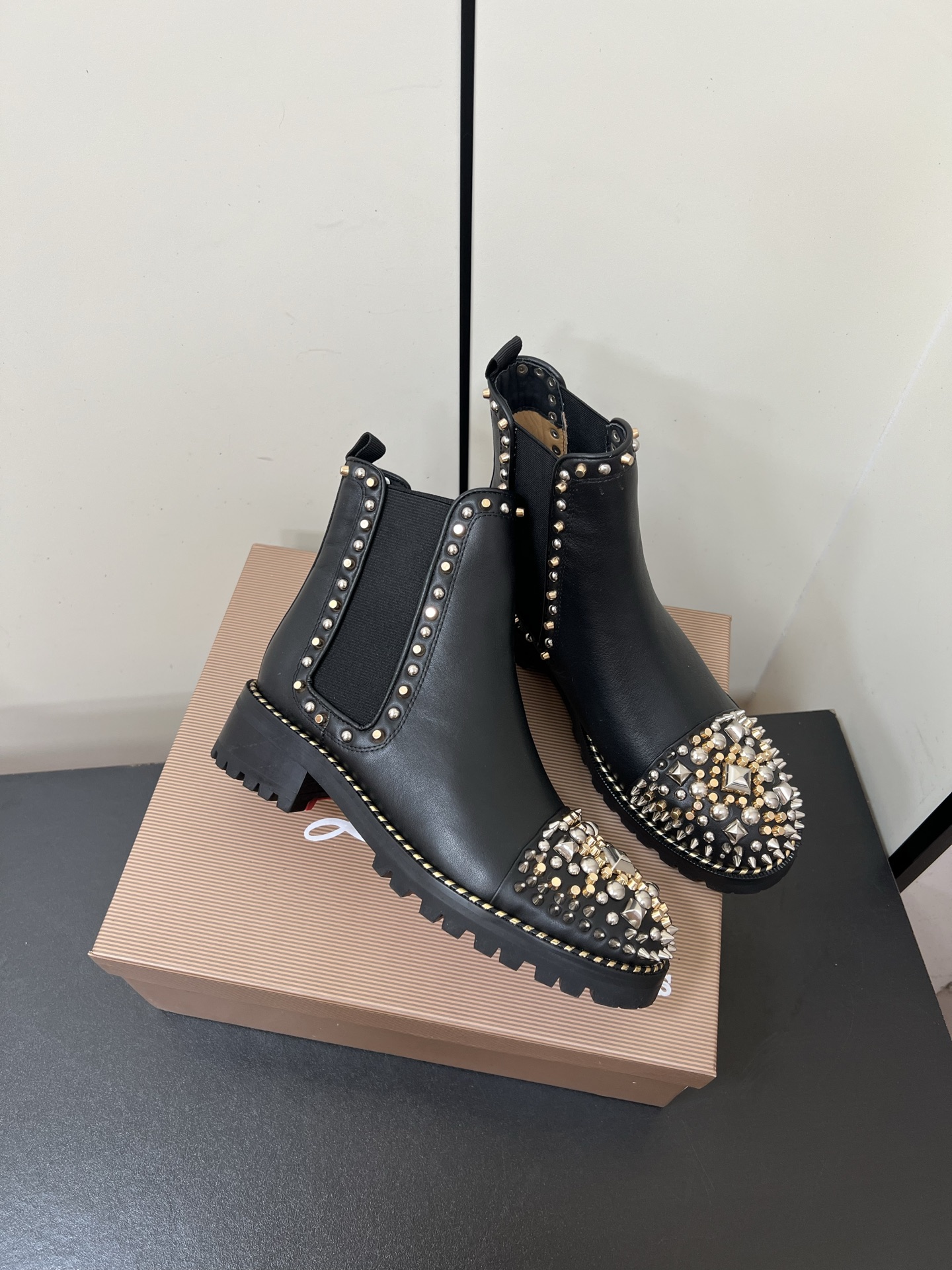 Christian Louboutin Chasse à Clou Studded Cap Toe Chelsea Booties