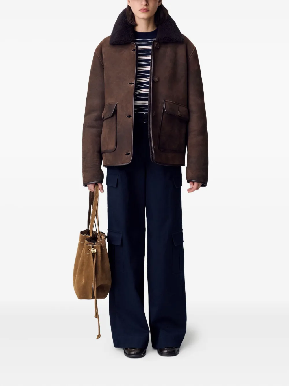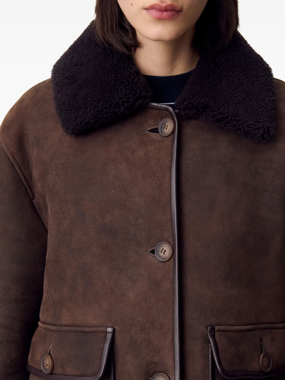 Claudie Pierlot Shearling-Collar Suede Jacket
