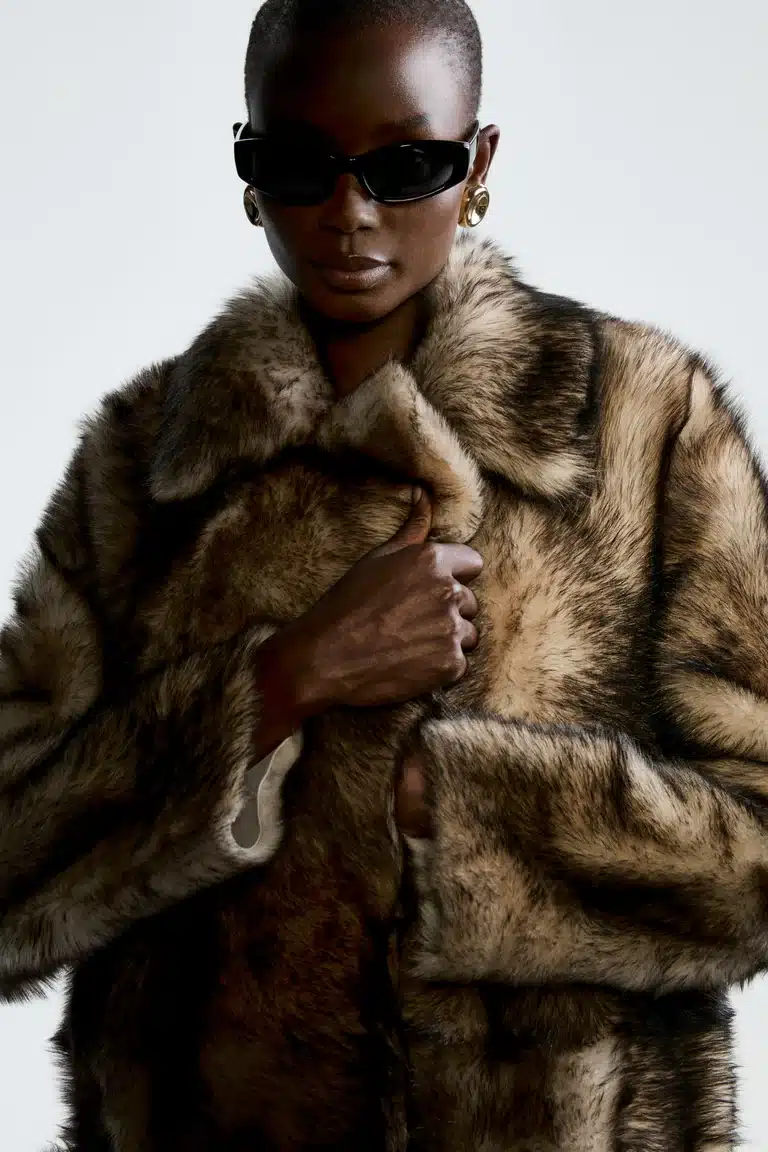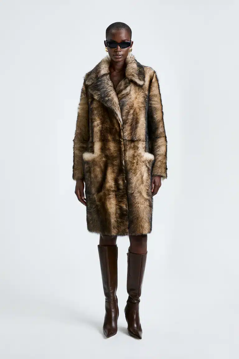 Striking statement coat with wild tundra-inspired texture