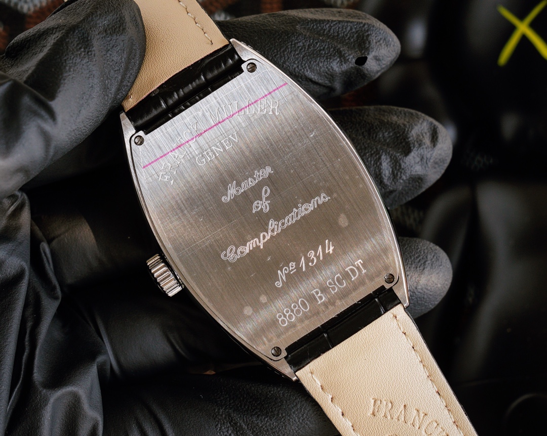 - Iconic Cintrée Curvex tonneau shape — a hallmark of Franck Muller elegance.