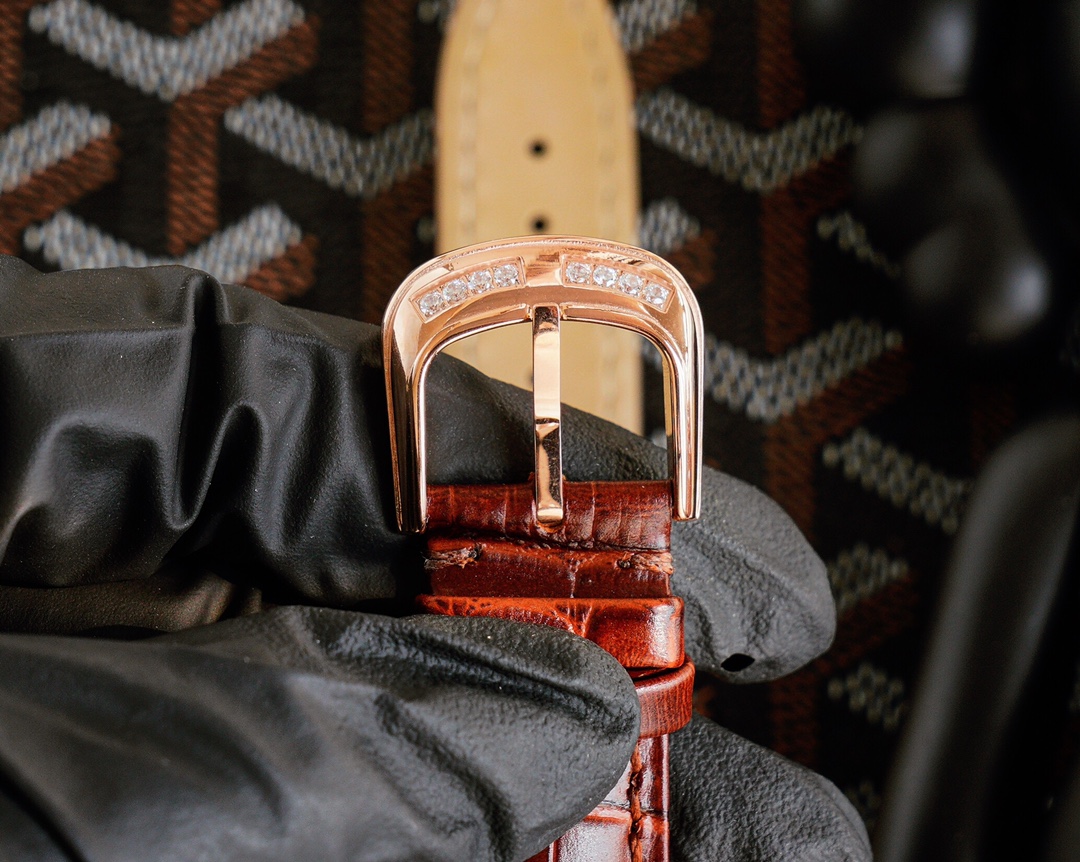 - Strap: Hand-stitched alligator leather strap (available in black or brown) with matching gold buckle