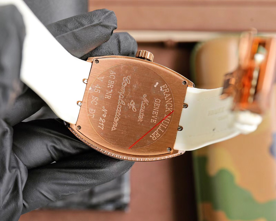 Franck Muller Vanguard Rose Gold Diamond Watch – White Dial & Alligator Strap