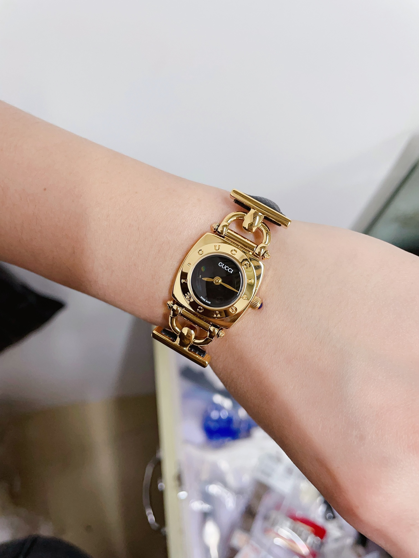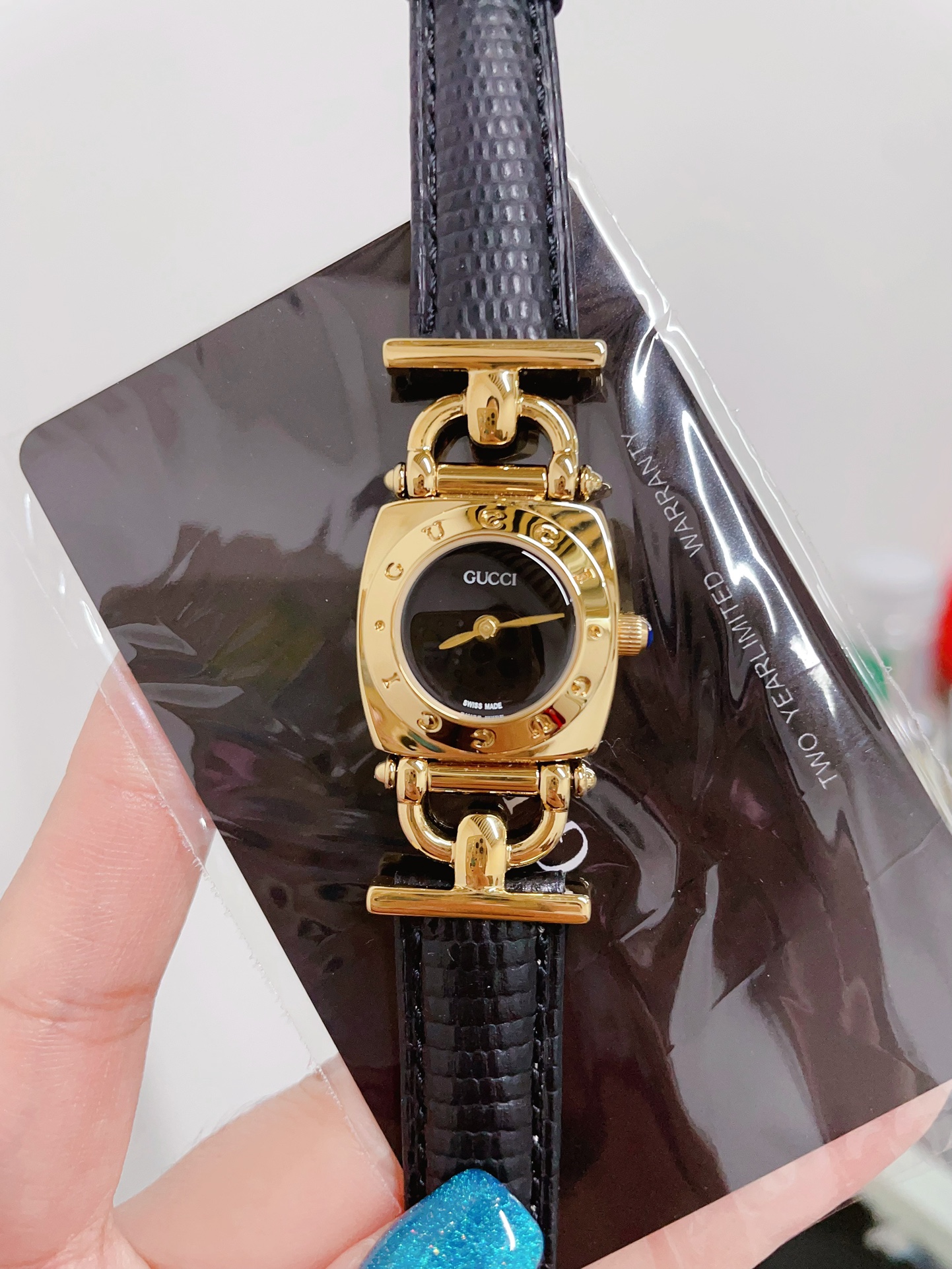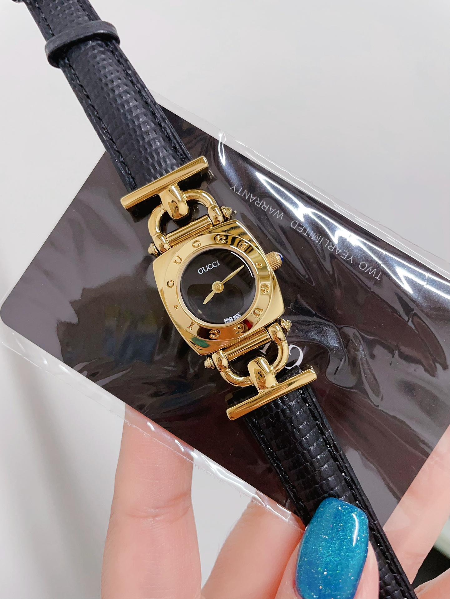 - Bezel: Fixed gold bezel with engraved GUCCI logo detailing