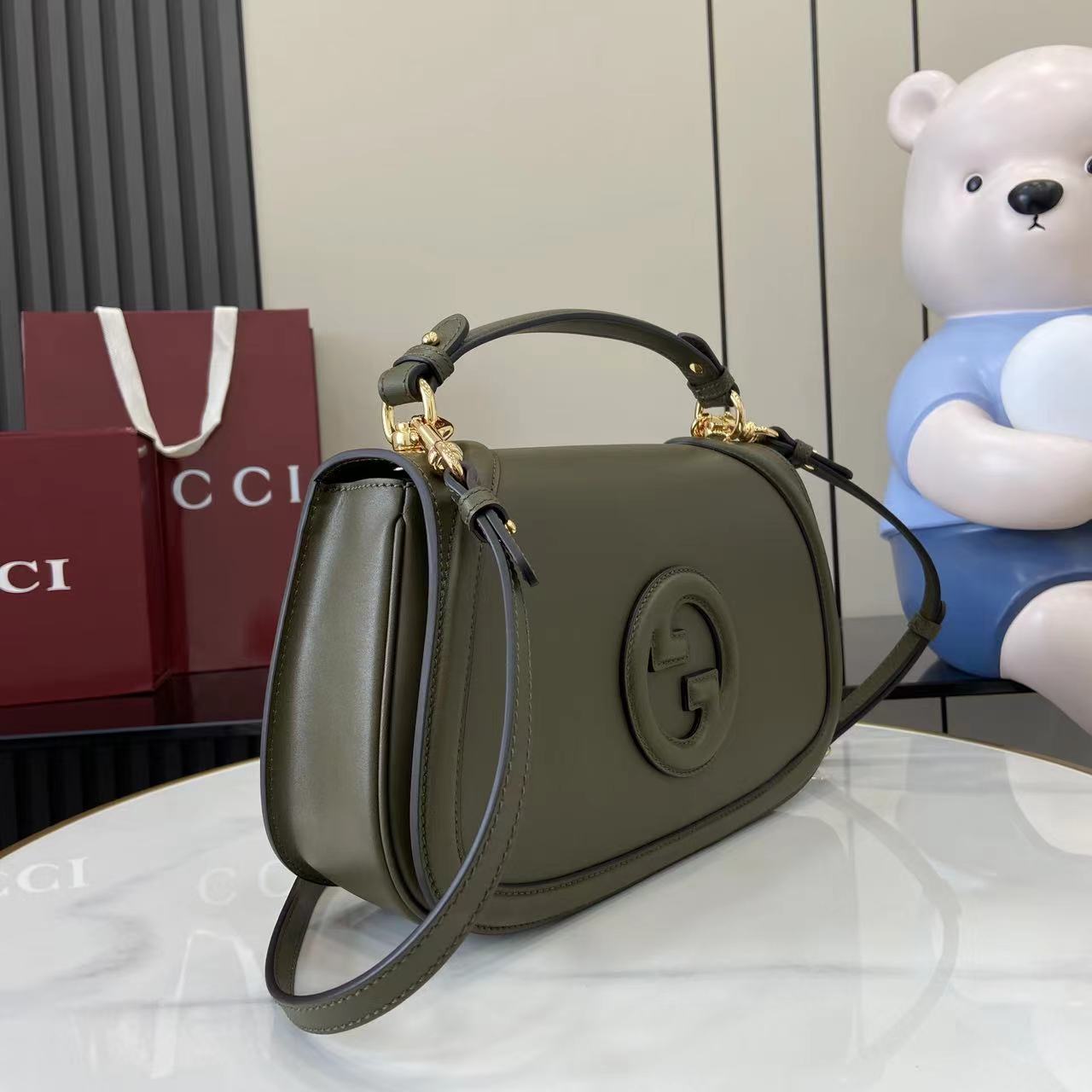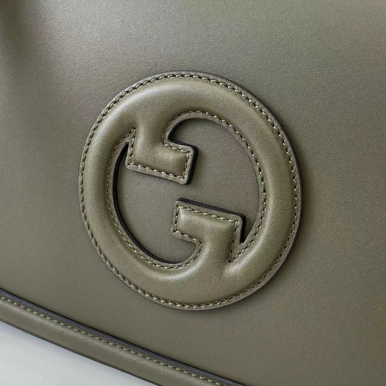 - Signature Gucci Blondie round Interlocking G leather emblem on front