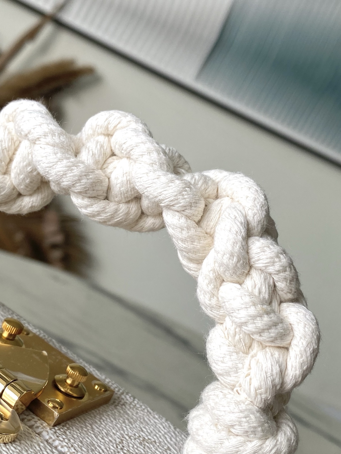 - Unique braided rope handle, adding nautical and couture-inspired detail