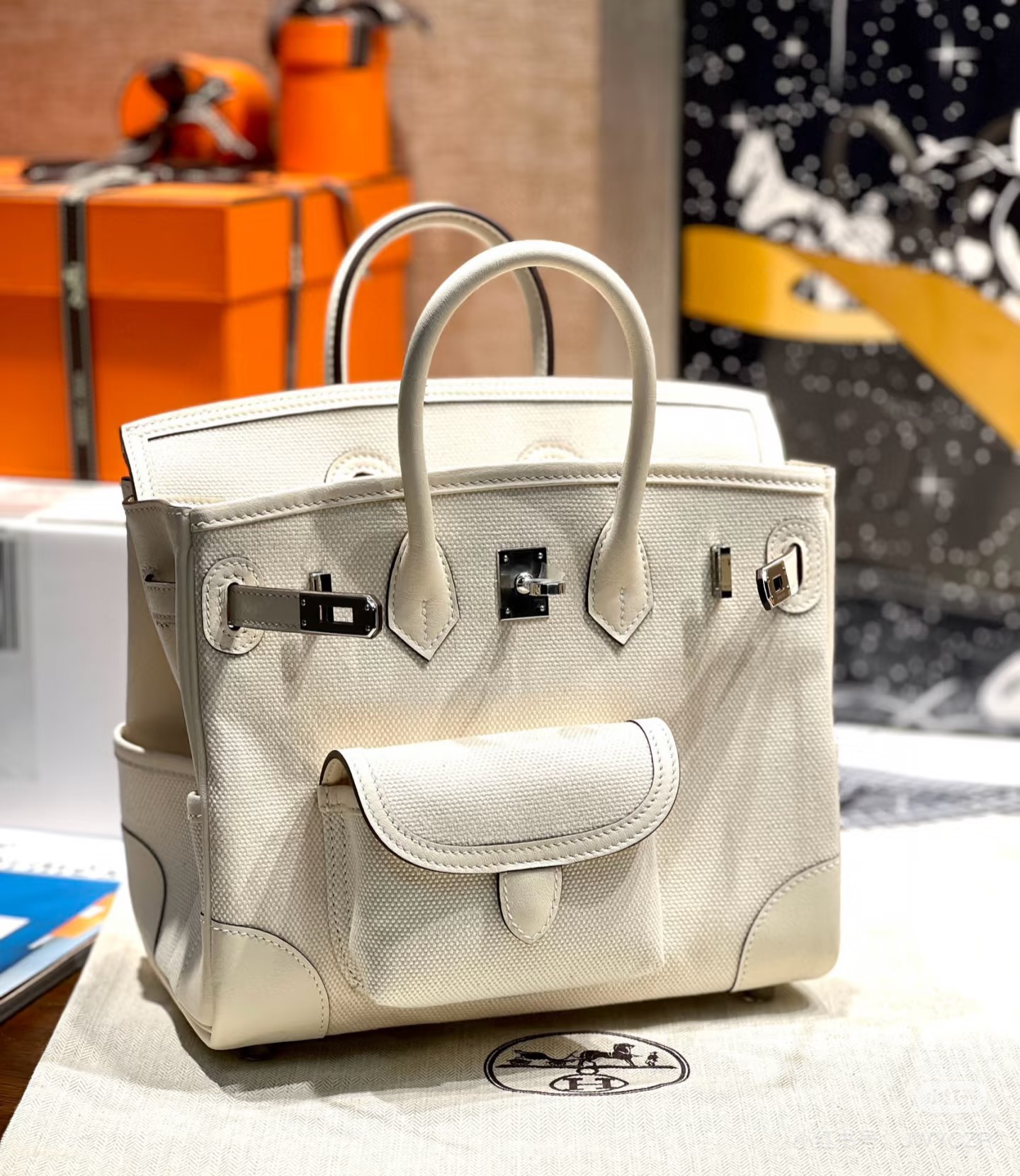 - Classic Birkin 25 silhouette with Cargo exterior pockets for utility