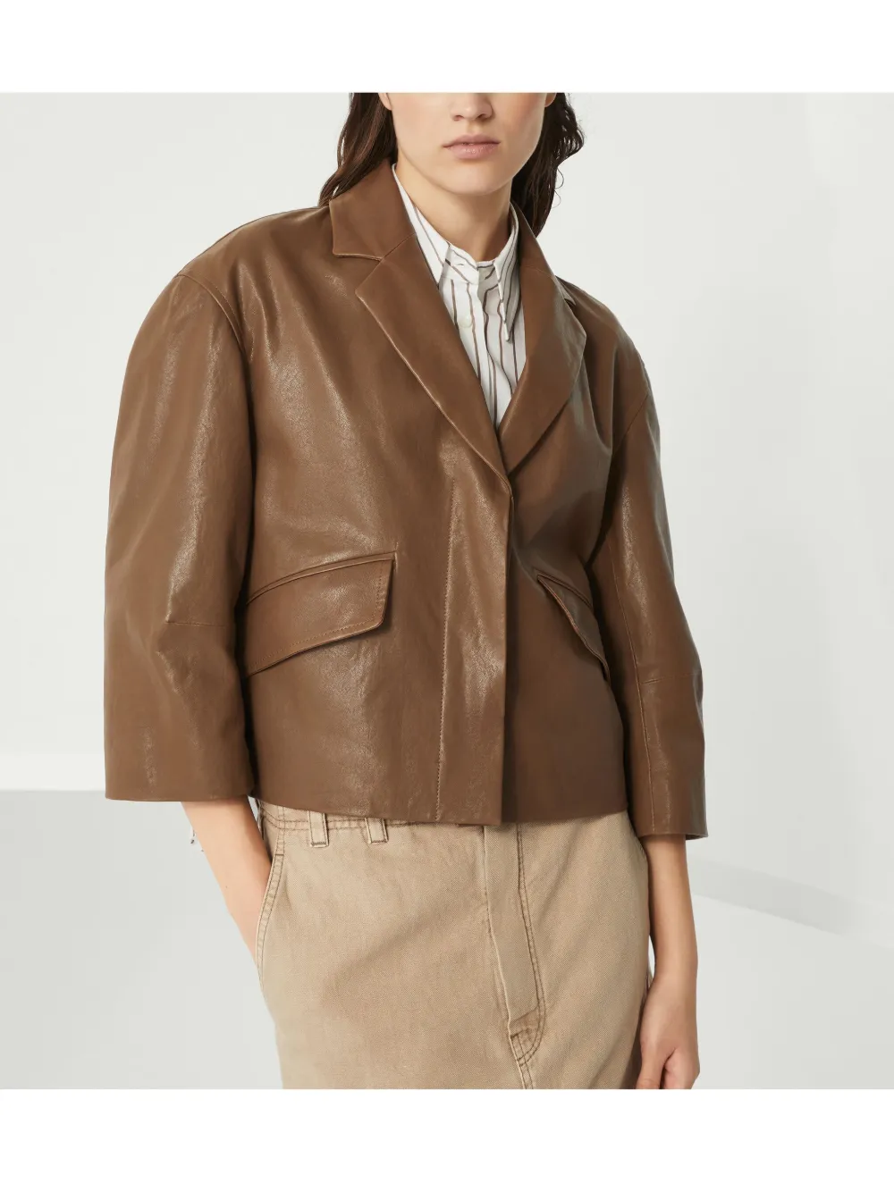 Jil Sander Boxy Brown Leather Blazer