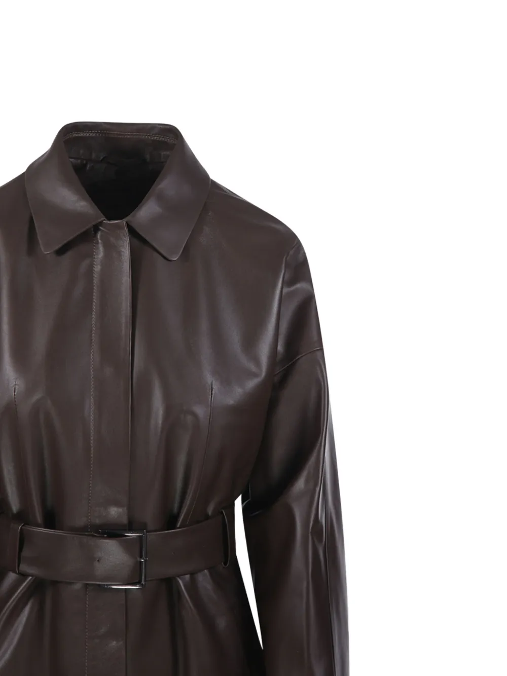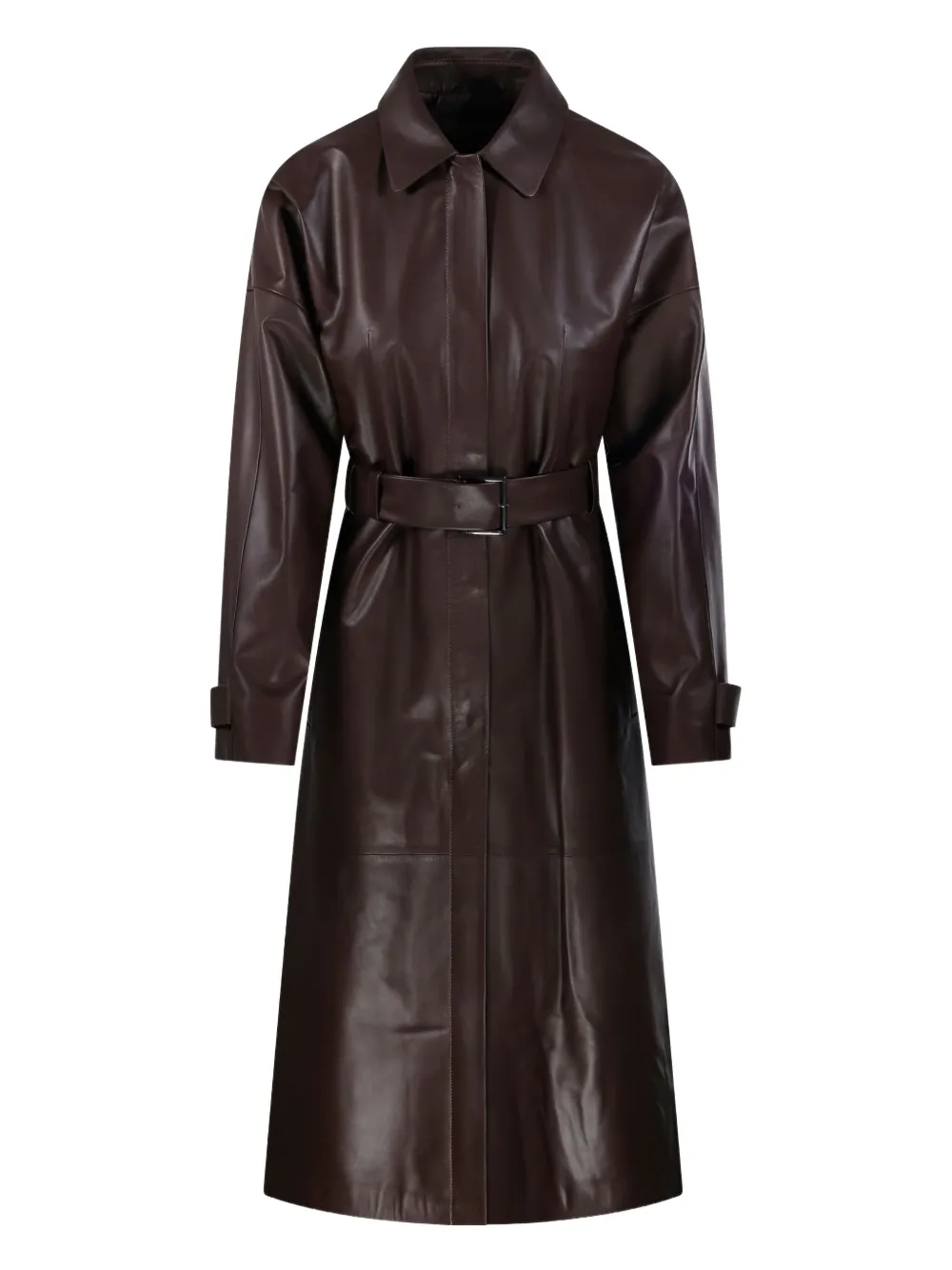 Longline silhouette with waist-cinching leather belt and tonal buckle