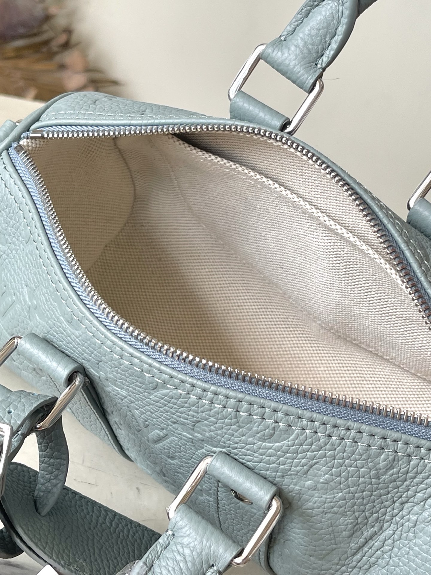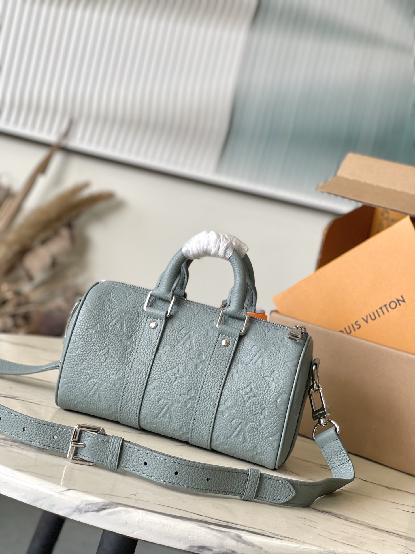 - Top Handles: Rounded Taurillon leather handles with LV band