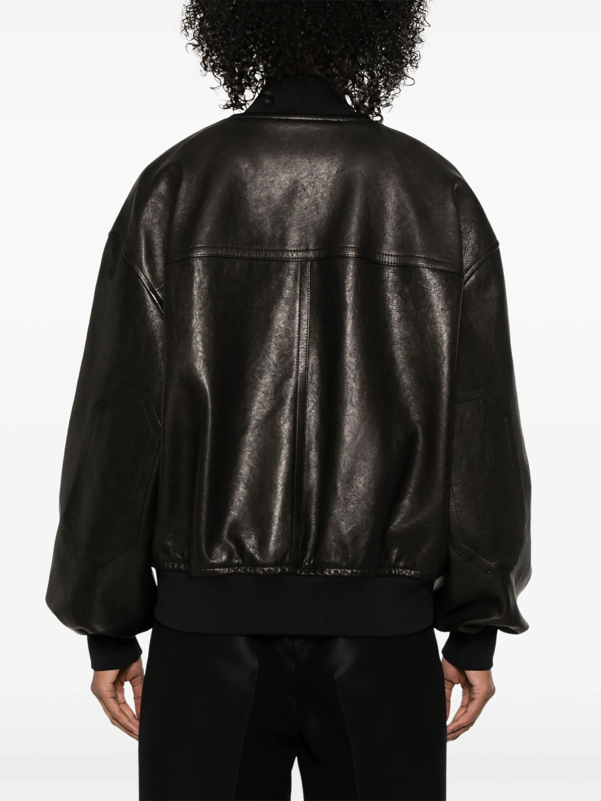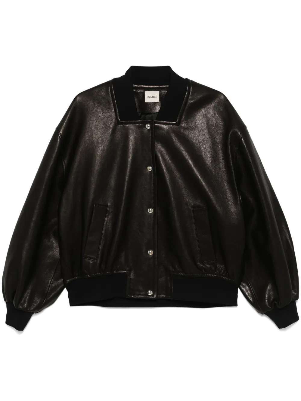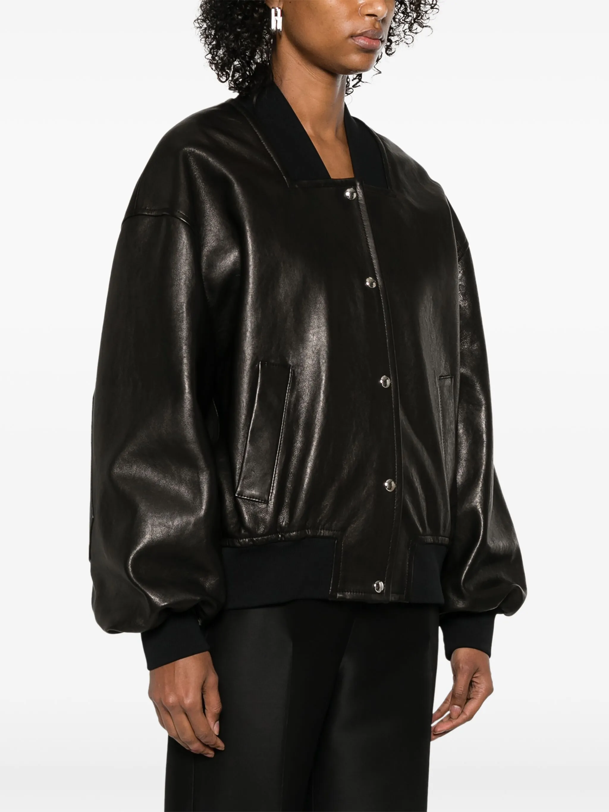 Khaite Oversized Black Leather Bomber Jacket