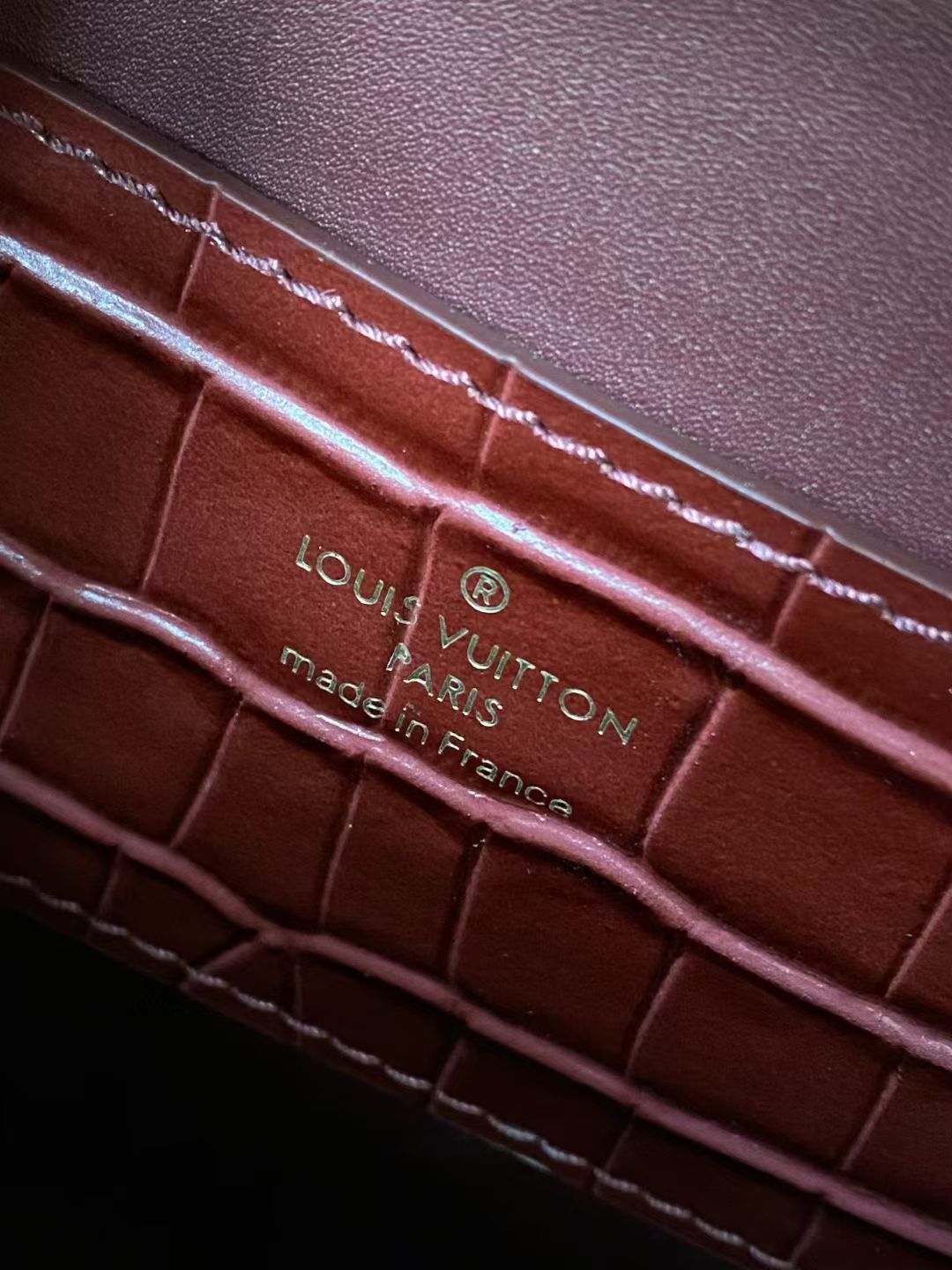 - Material: Luxurious crocodile-embossed leather with a glossy finish
