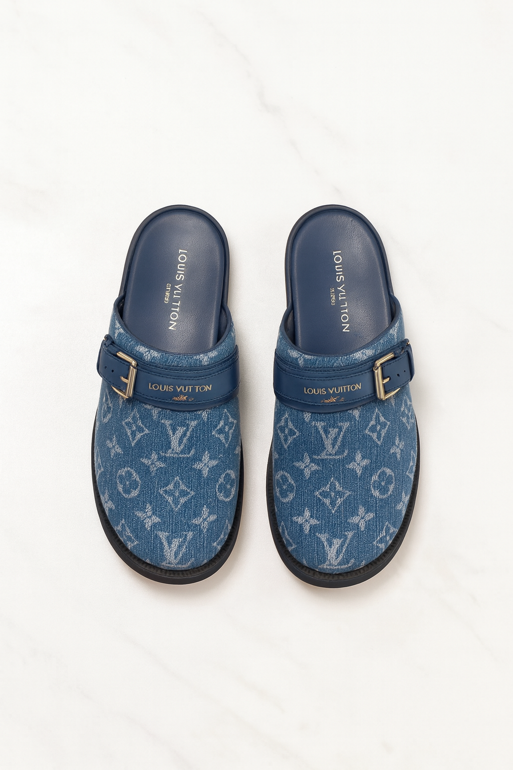 - Monogram denim gives a modern, trendy twist to a classic mule