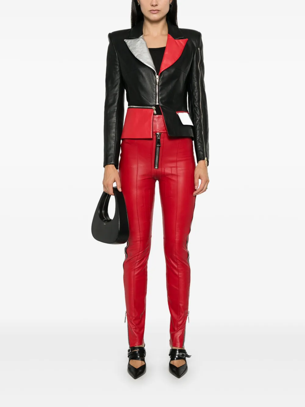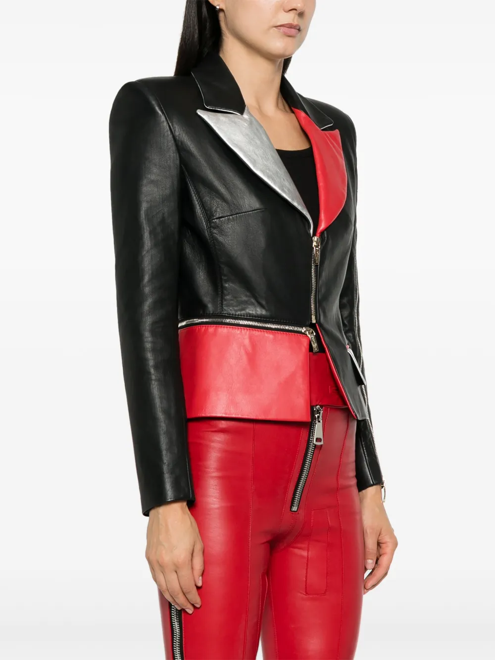 Bold colorblock palette: jet black base with striking red and silver inserts