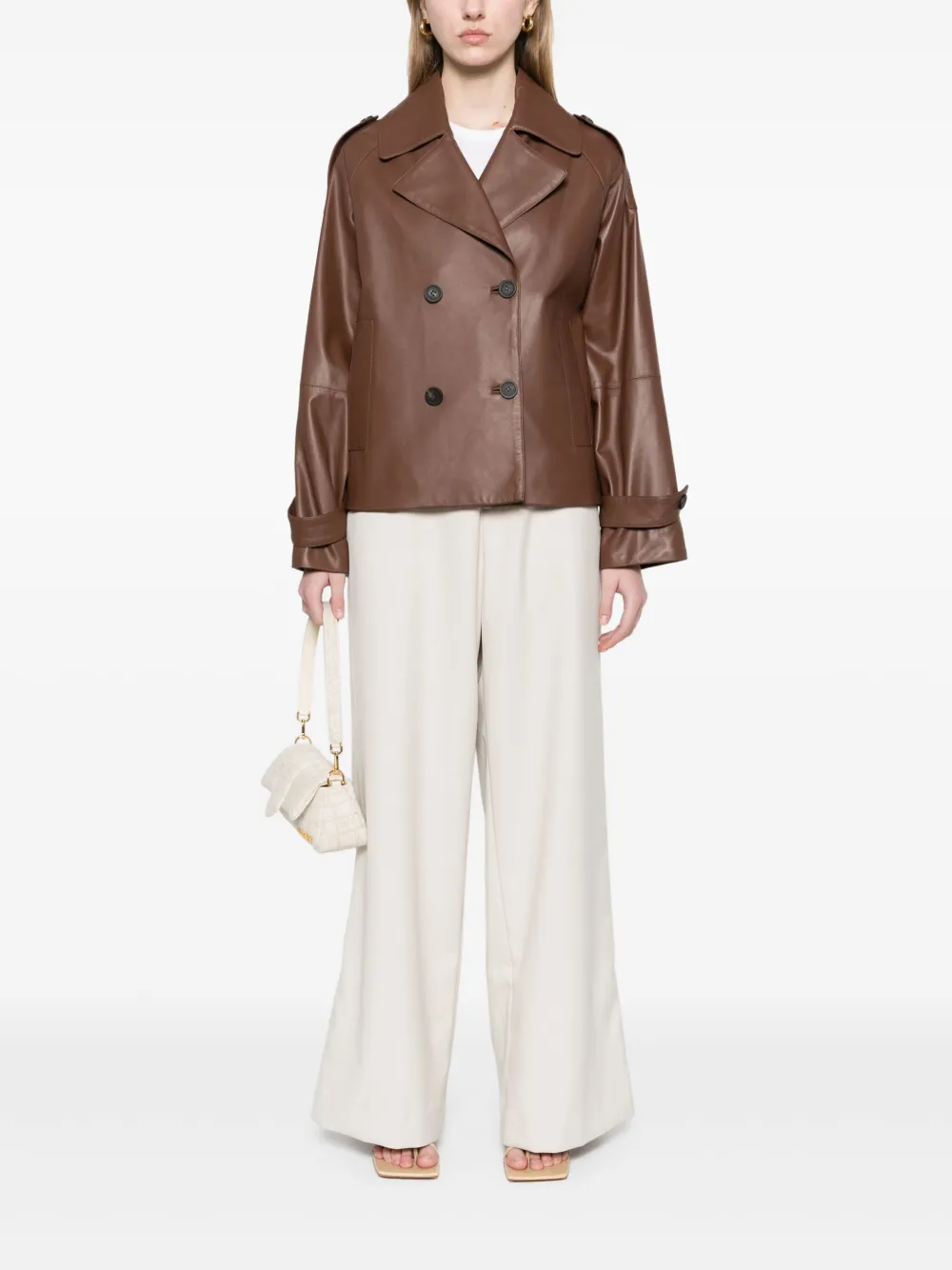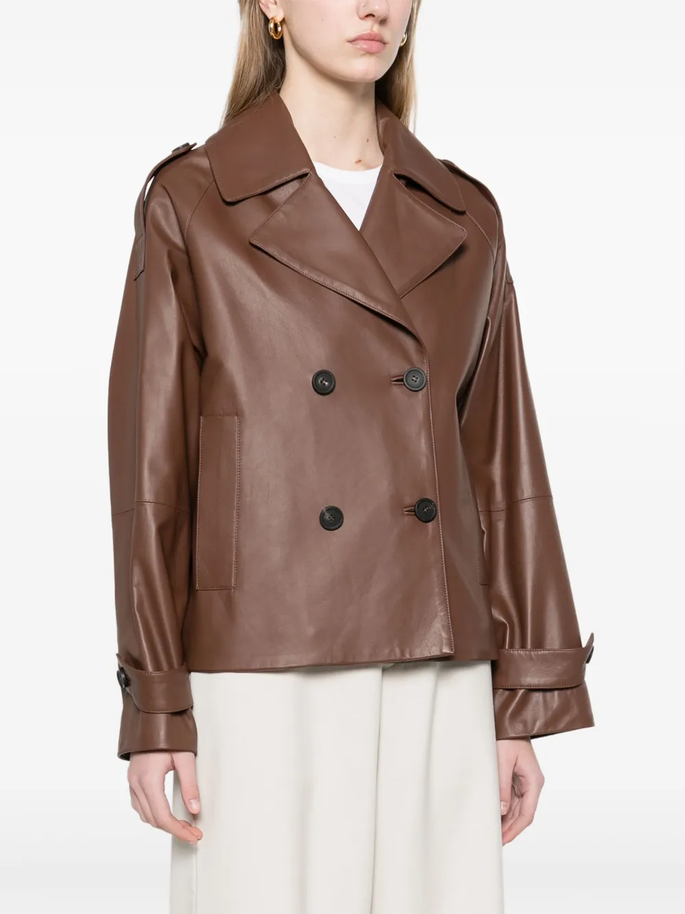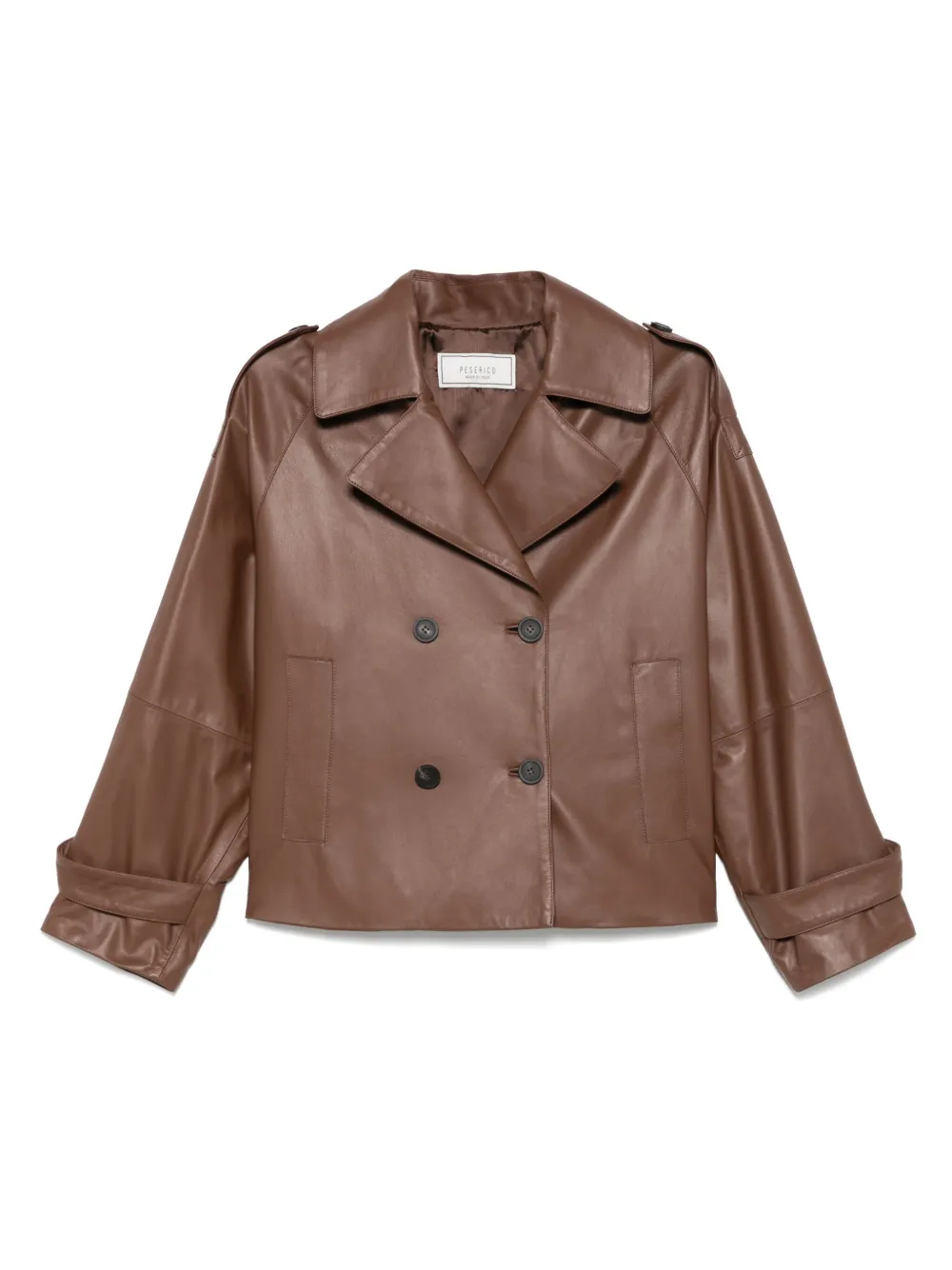 Peserico Cropped Double-Breasted Leather Jacket in Mocha Brown
