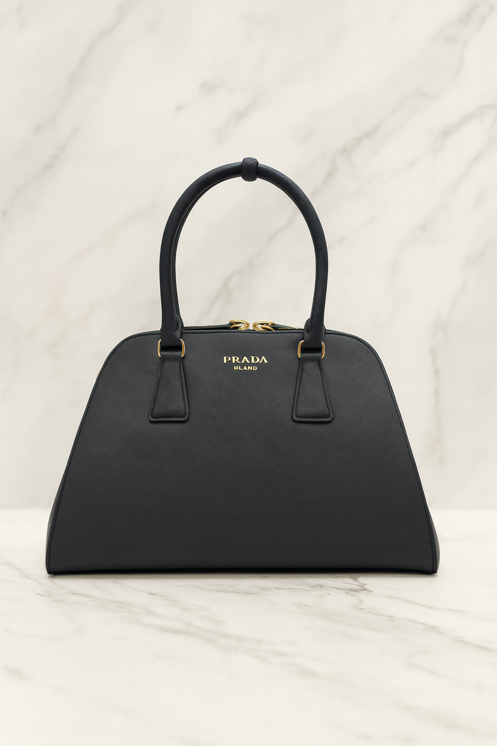 - Detail: Embossed Prada Milano logo in gold lettering