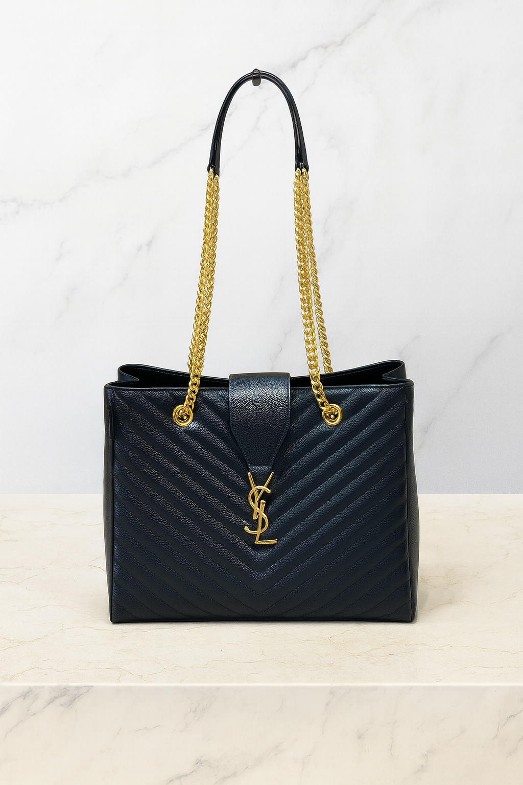 • Logo: Prominent gold YSL Cassandre monogram on the front flap tab