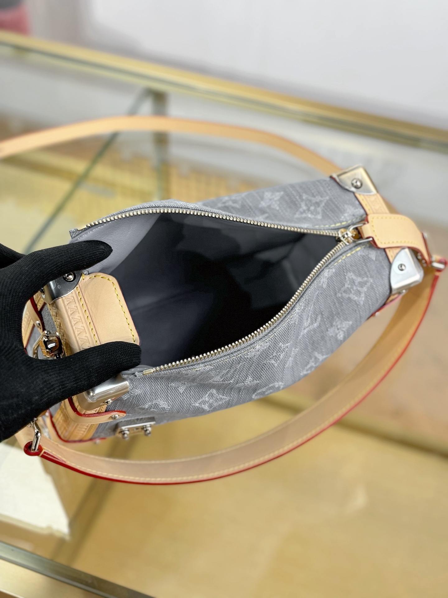 - Material: Monogram Denim (grey-blue washed effect)