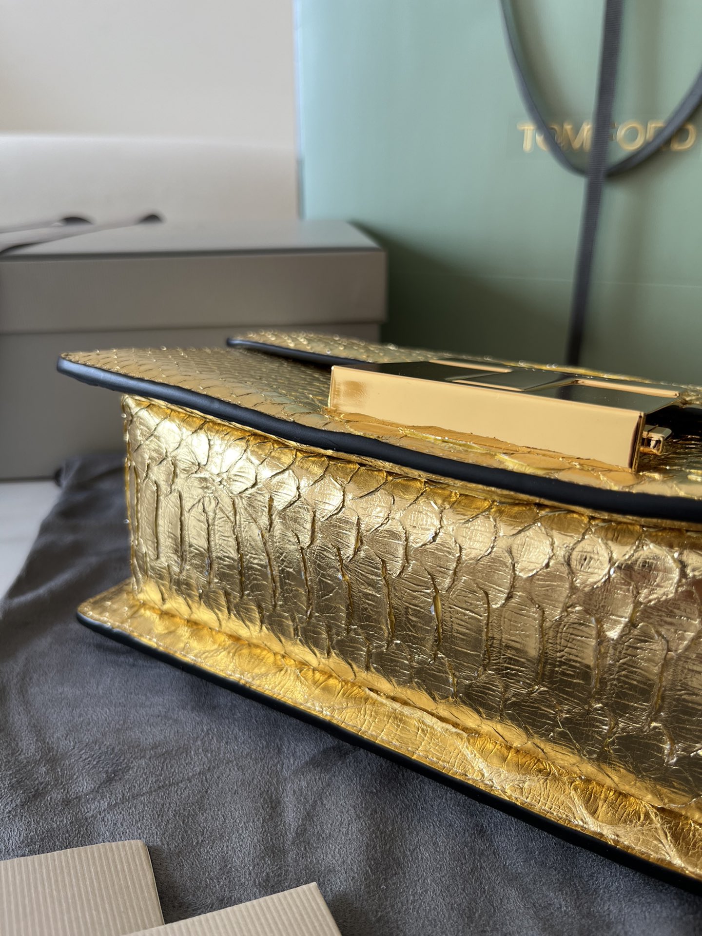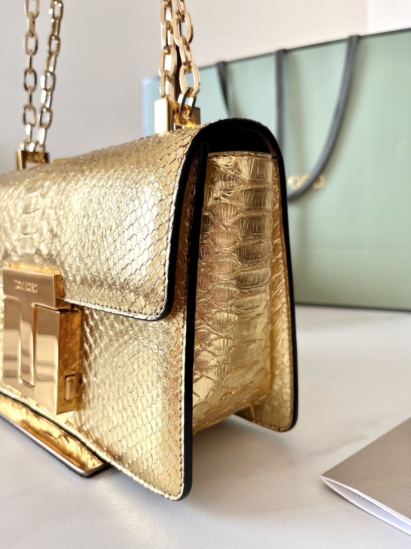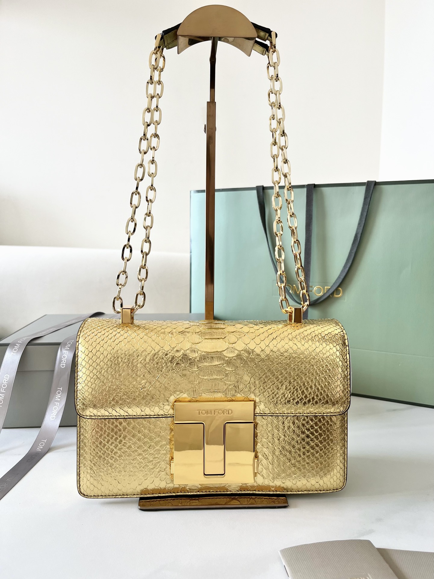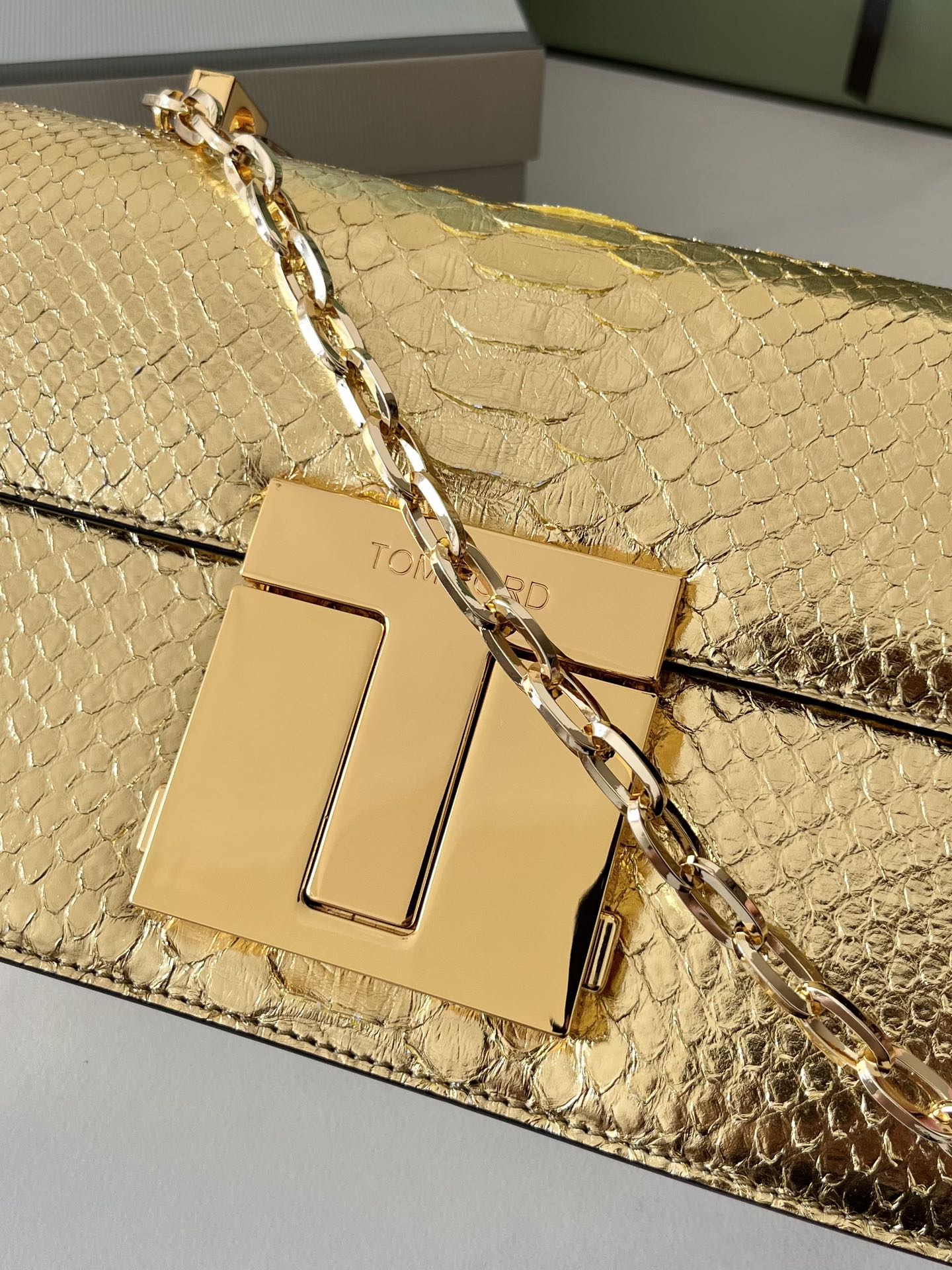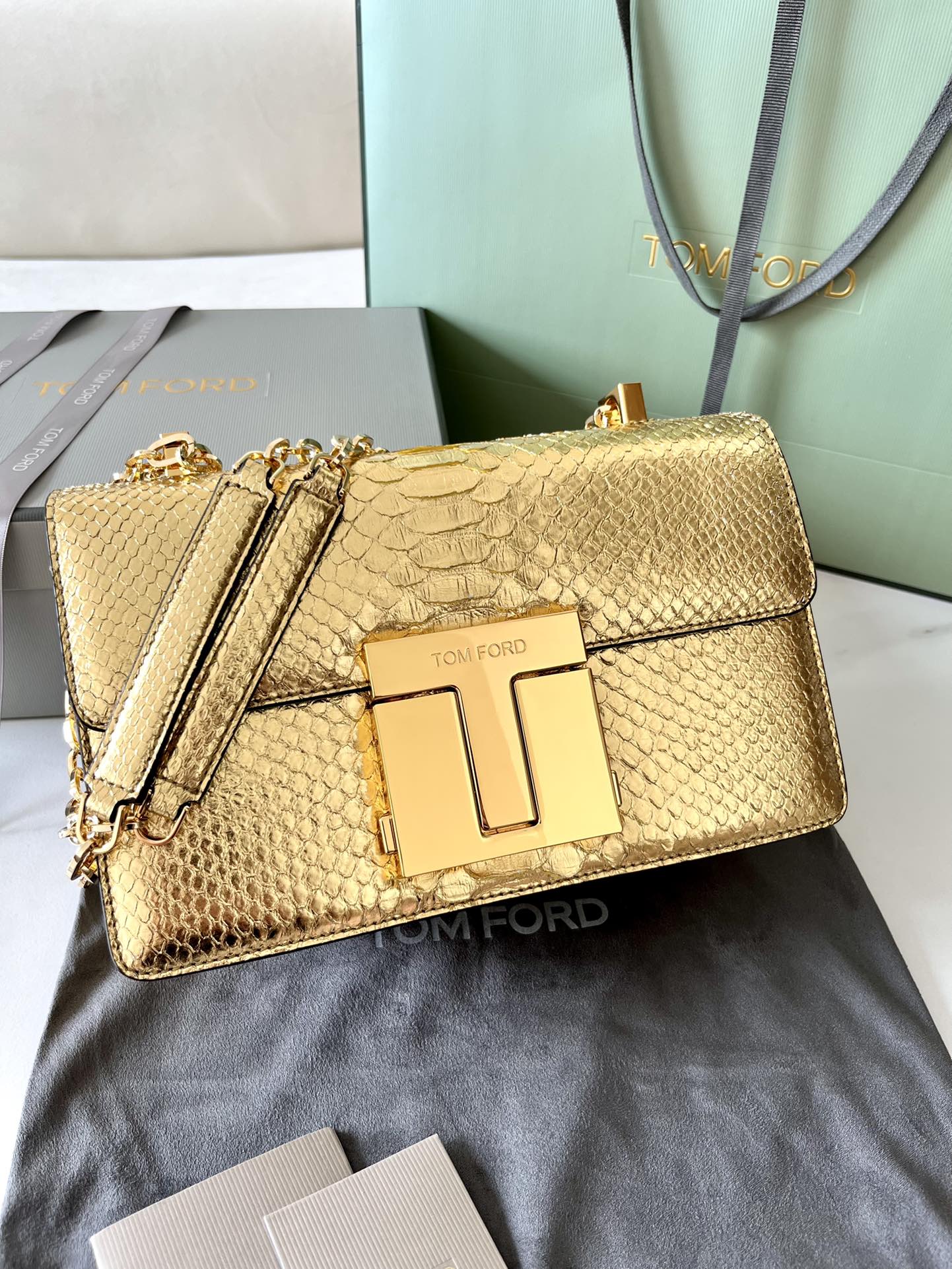 Tom Ford 001 Metallic Python-Embossed Chain Shoulder Bag