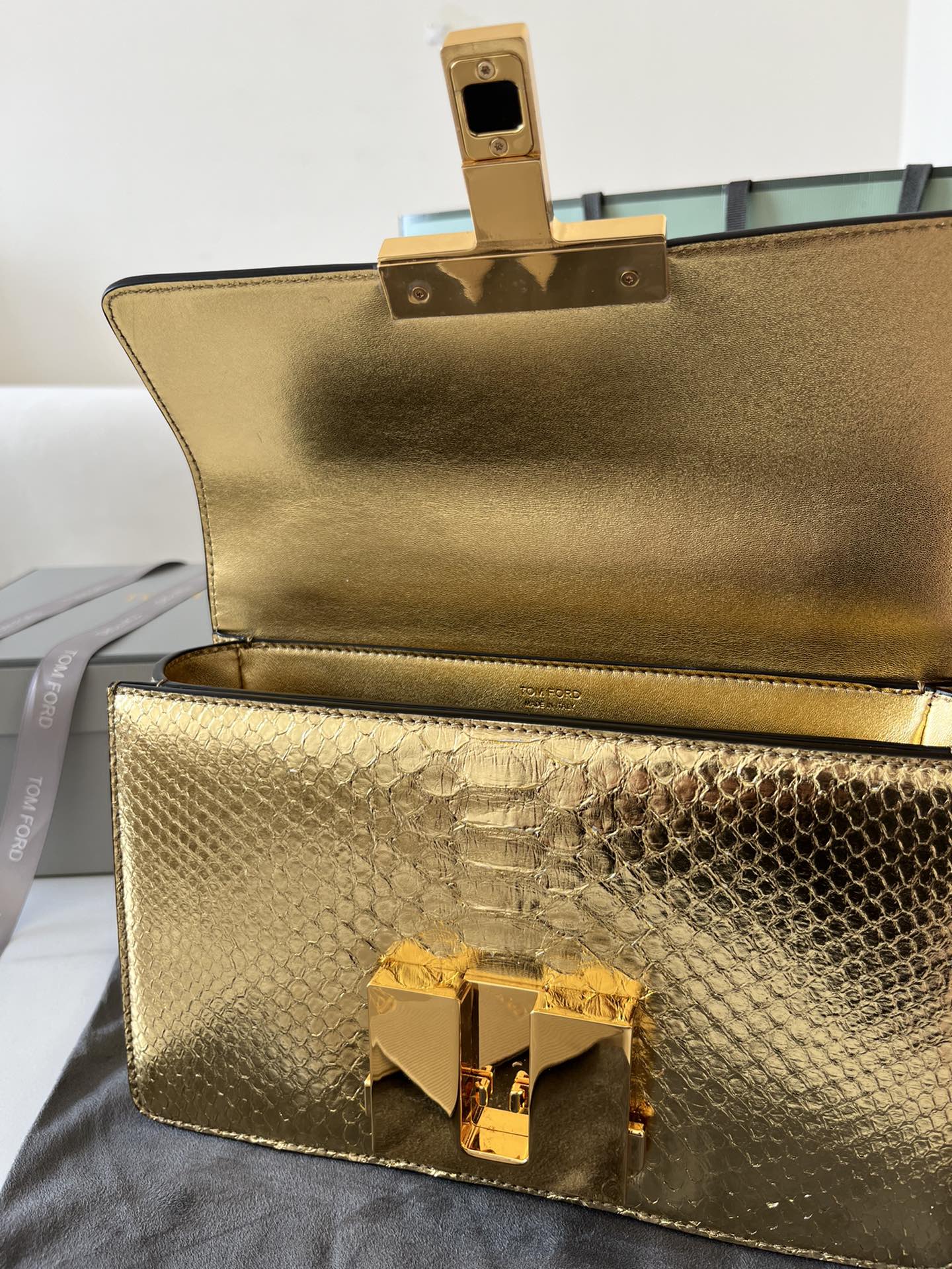 - Signature Tom Ford 001 hardware makes the bag instantly recognizable