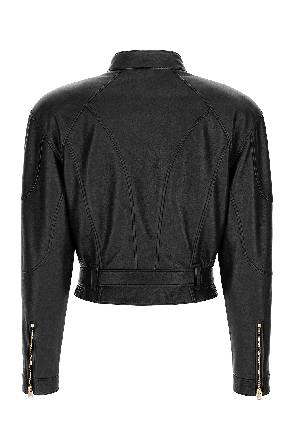 Cropped biker-inspired silhouette with a tailored fit