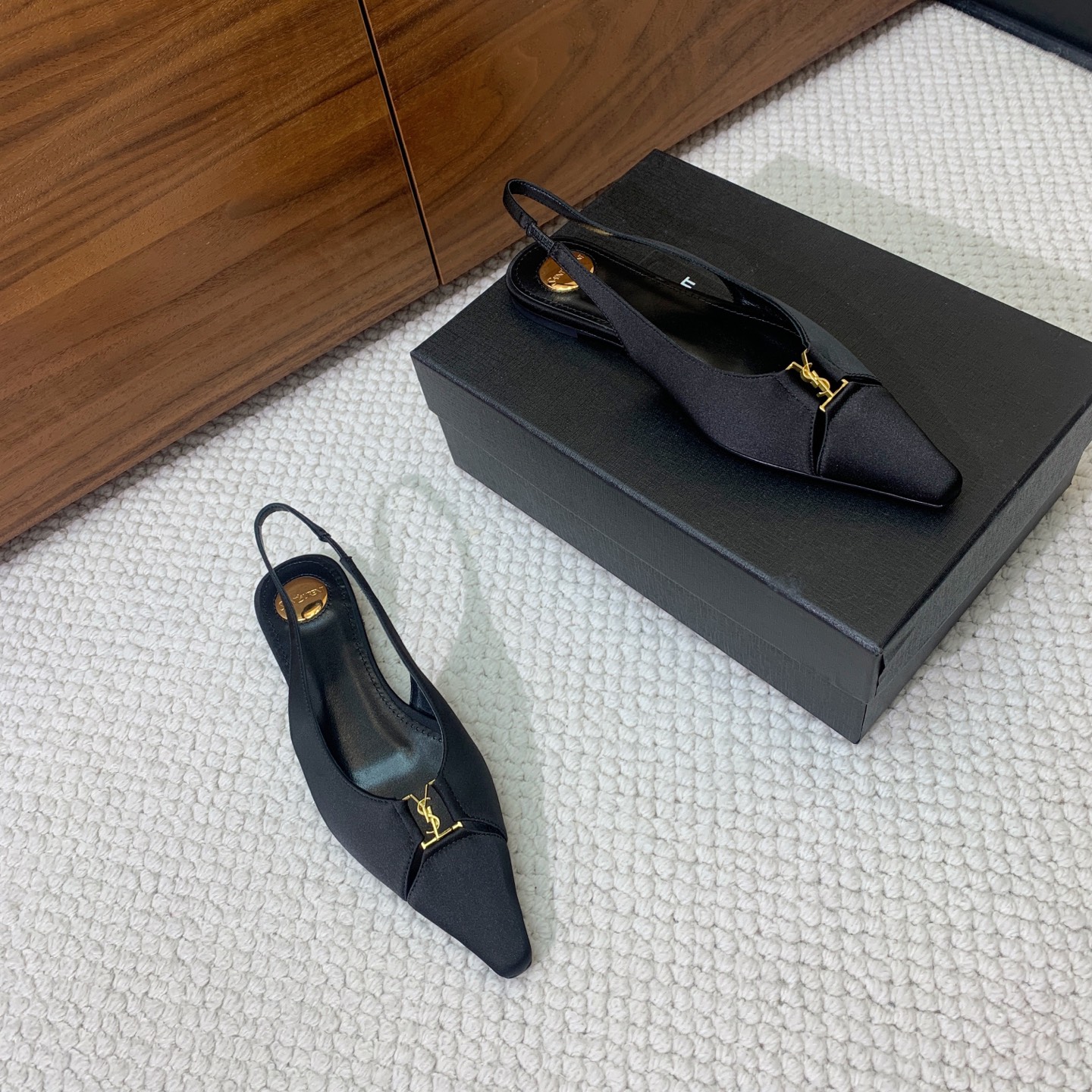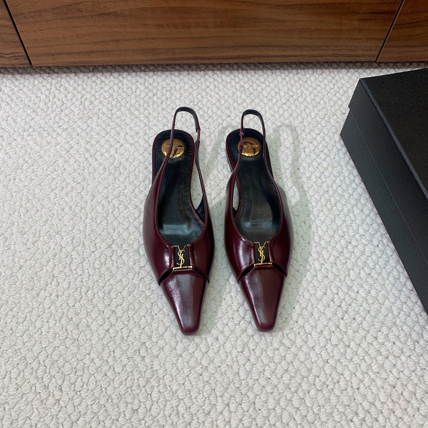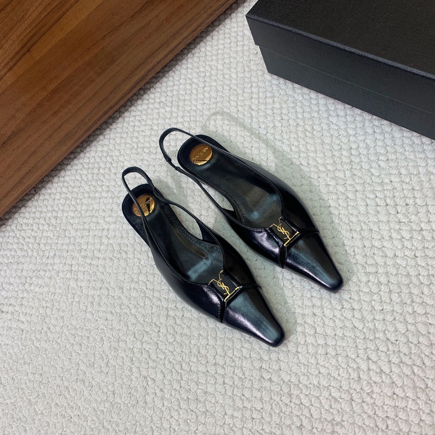 YSL SAINT LAURENT Babylone Leather Slingback Flats