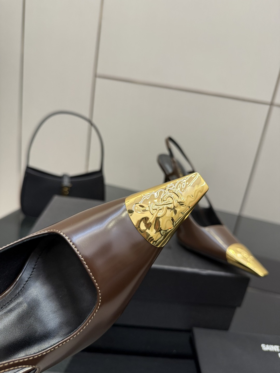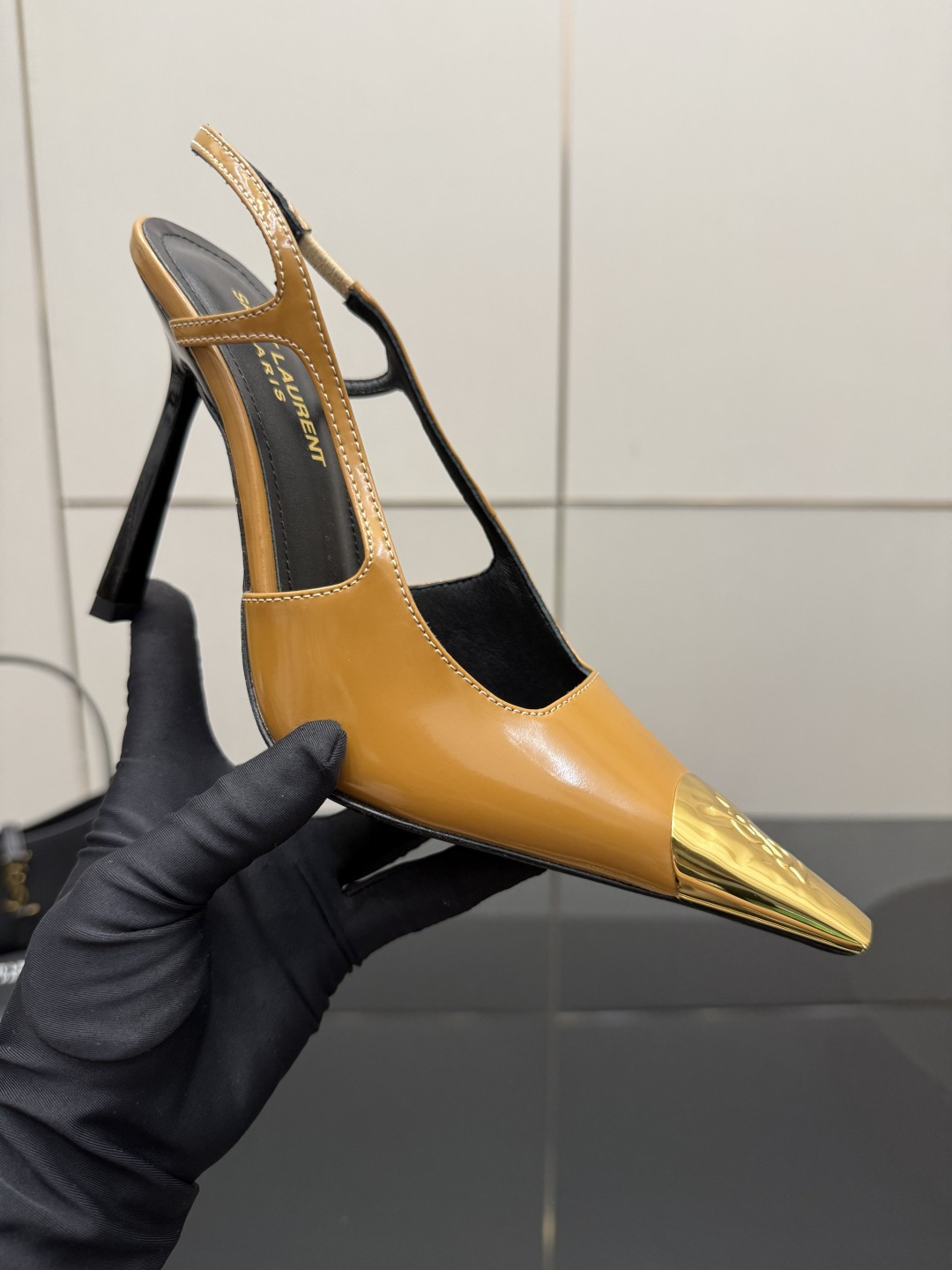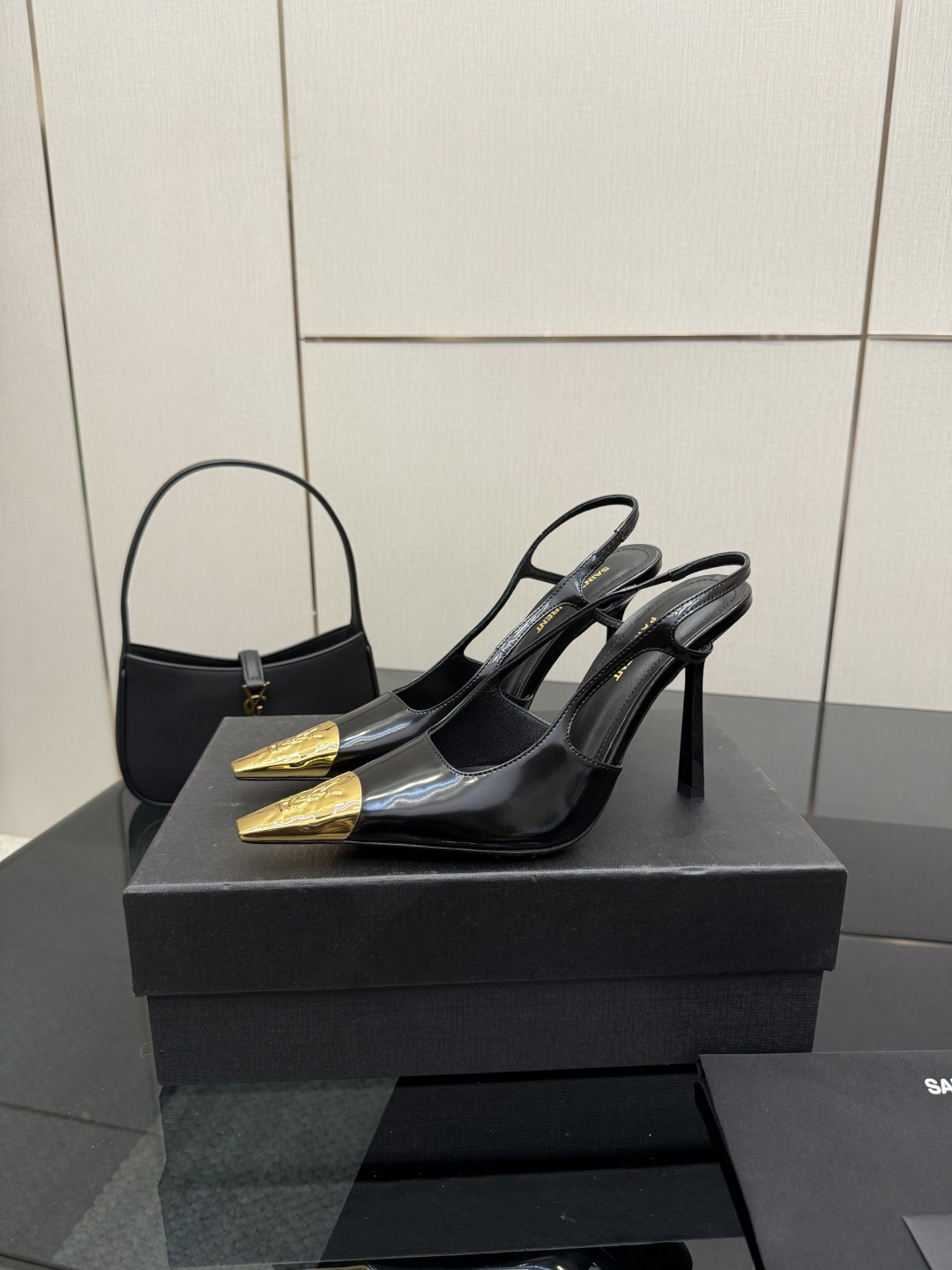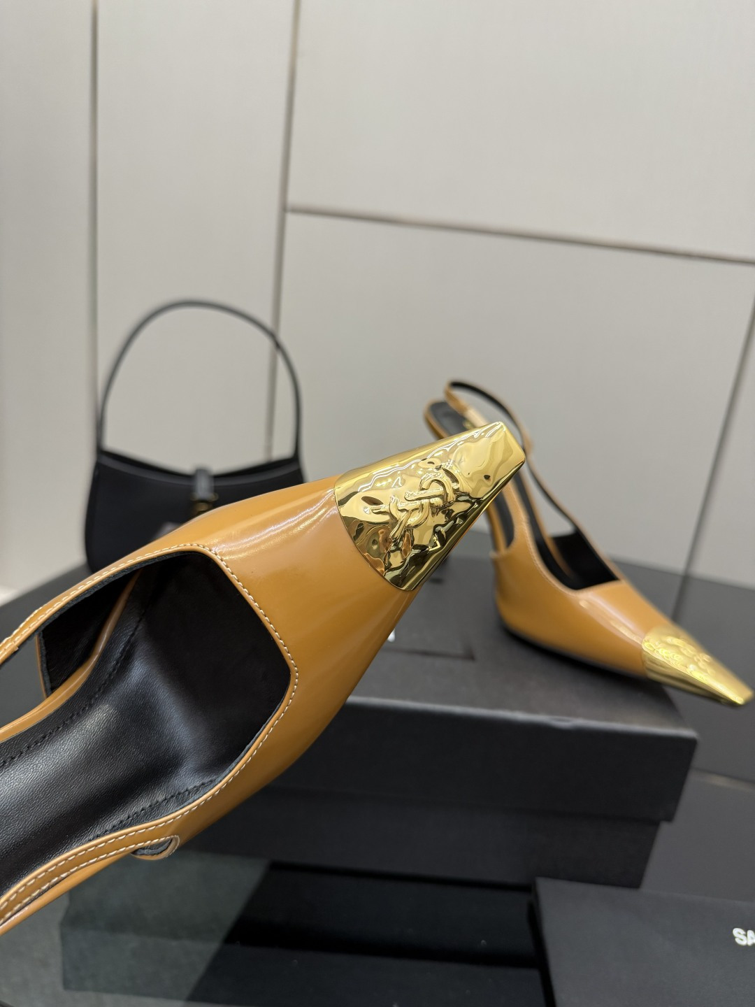 - Polished gold metal toe cap delivers an iconic Saint Laurent couture touch
