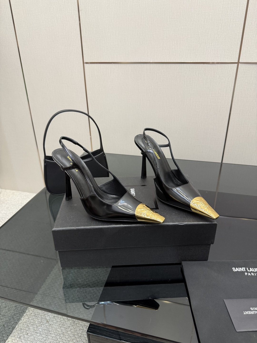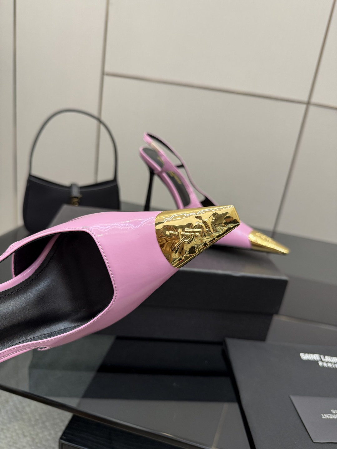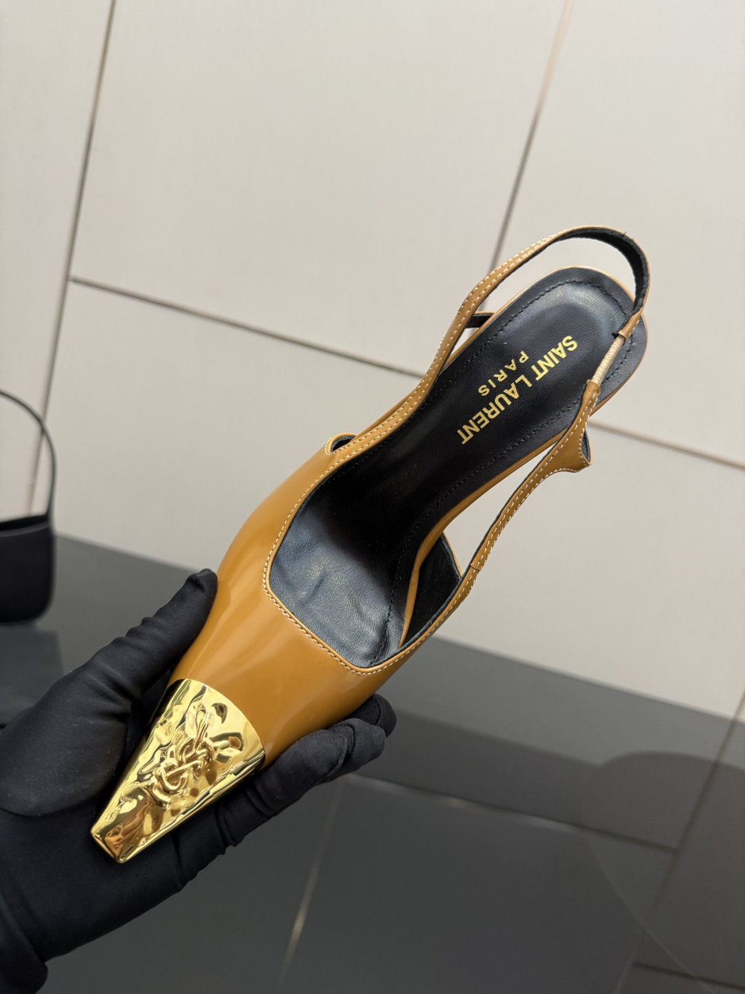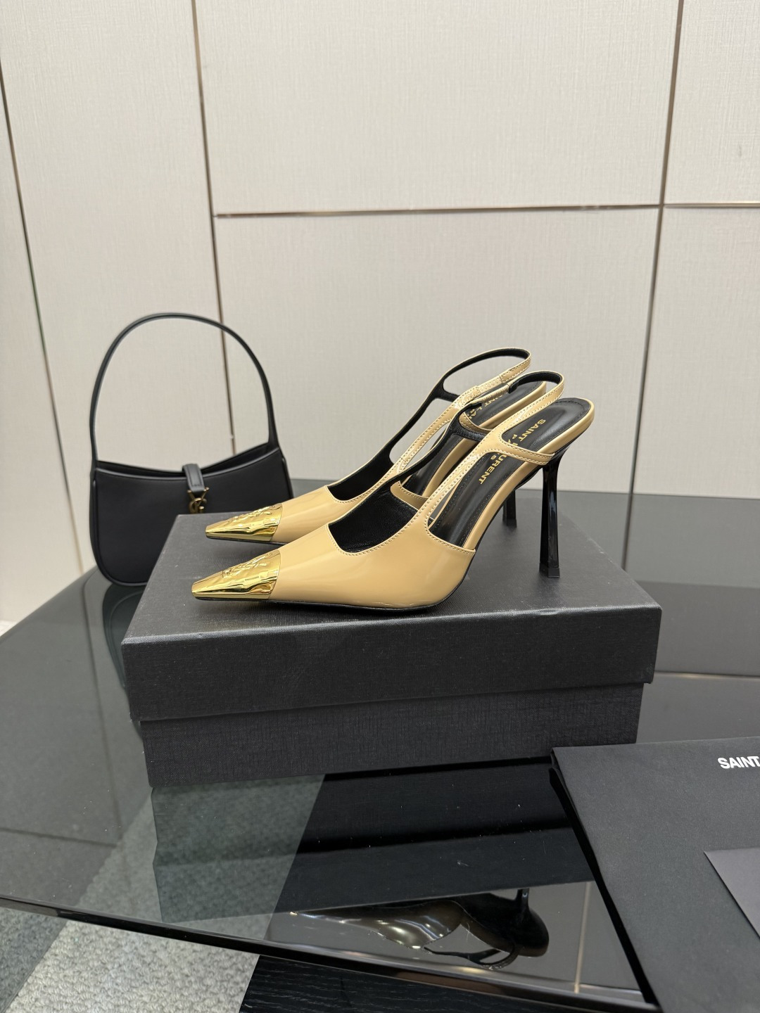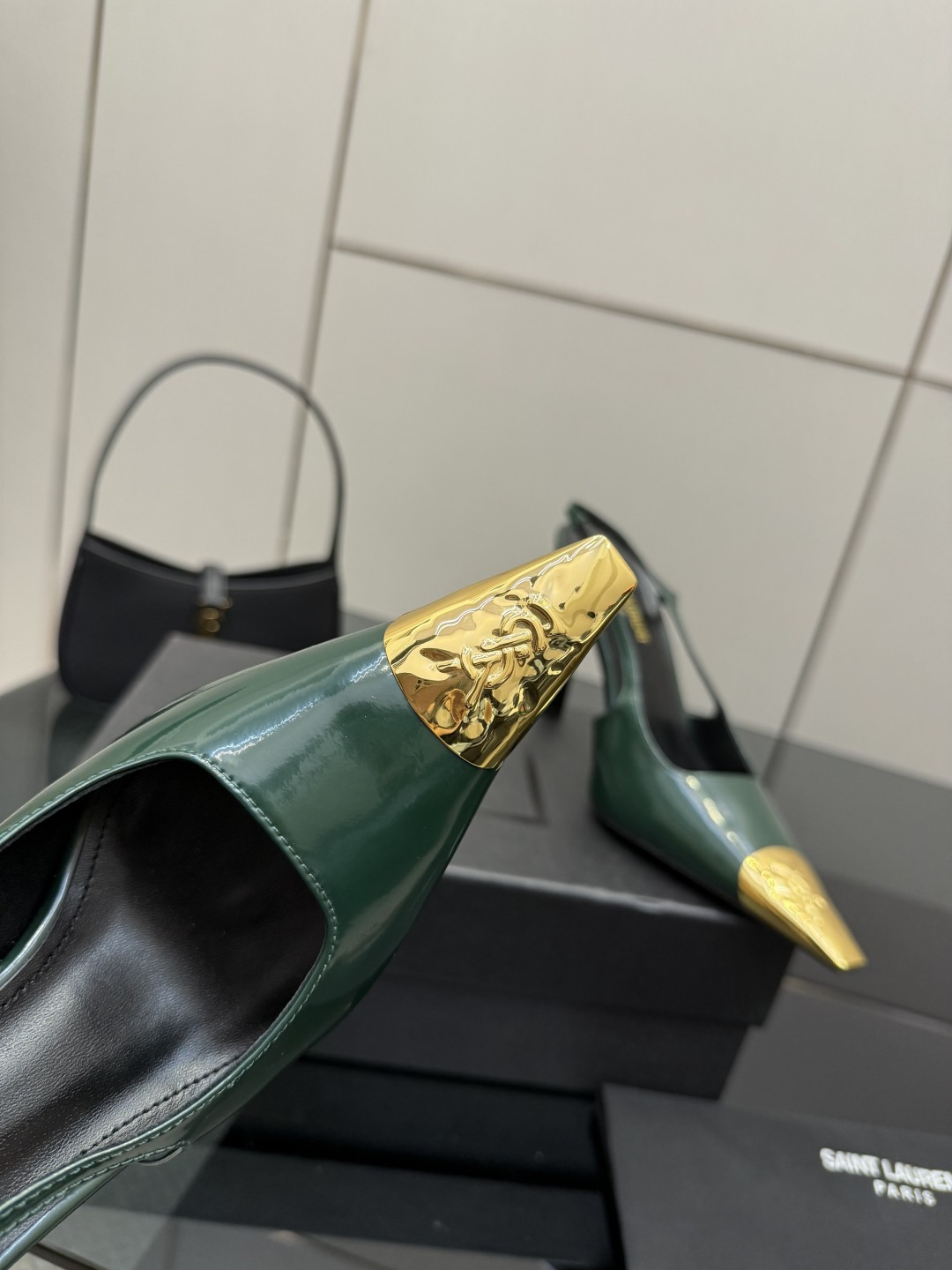 - Polished gold metal toe cap delivers an iconic Saint Laurent couture touch