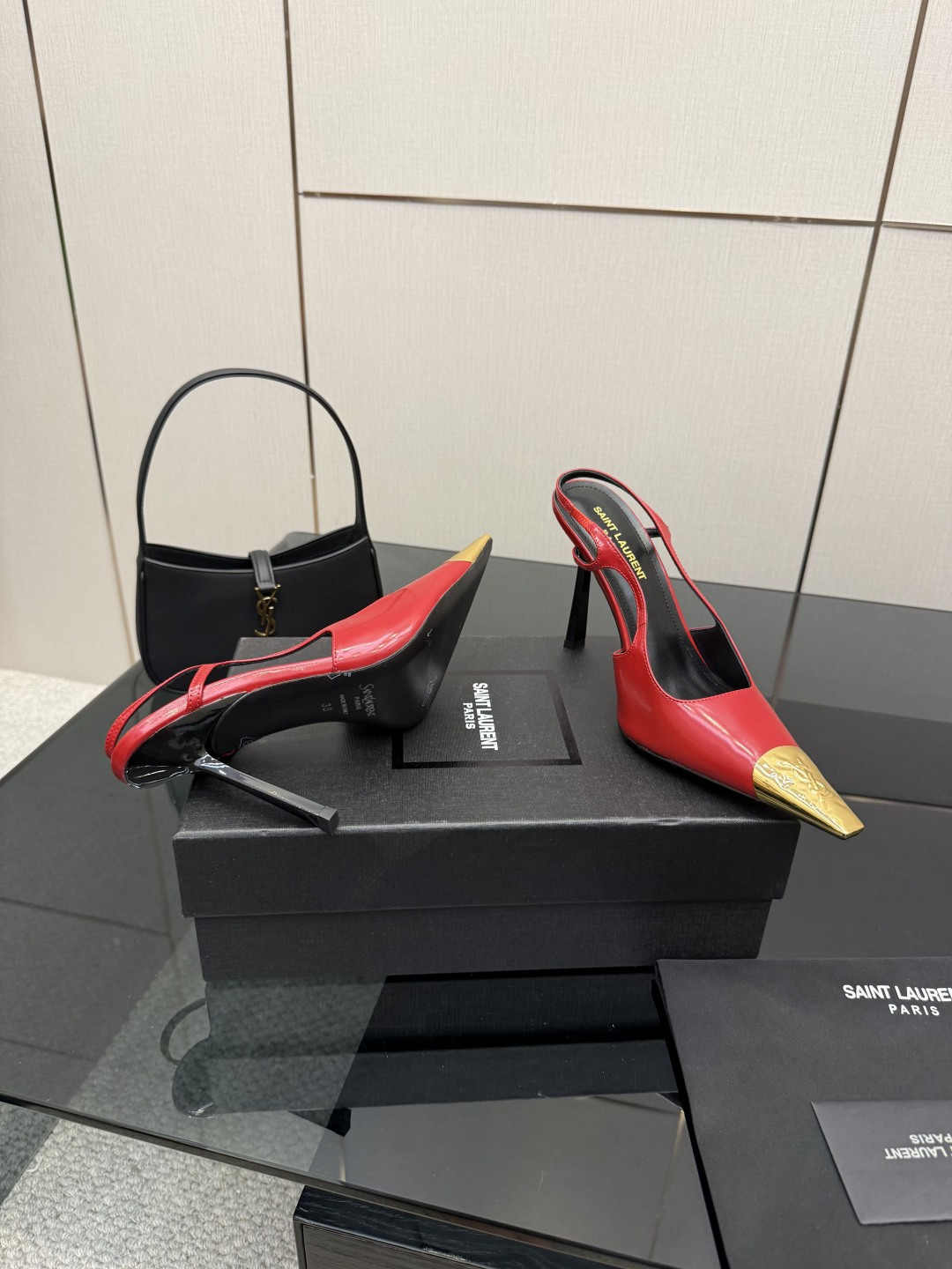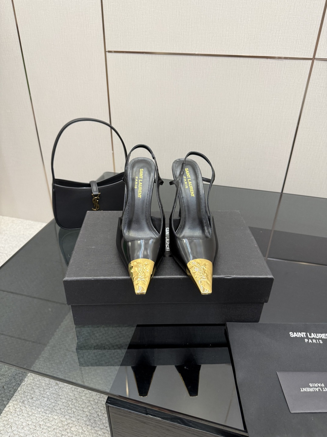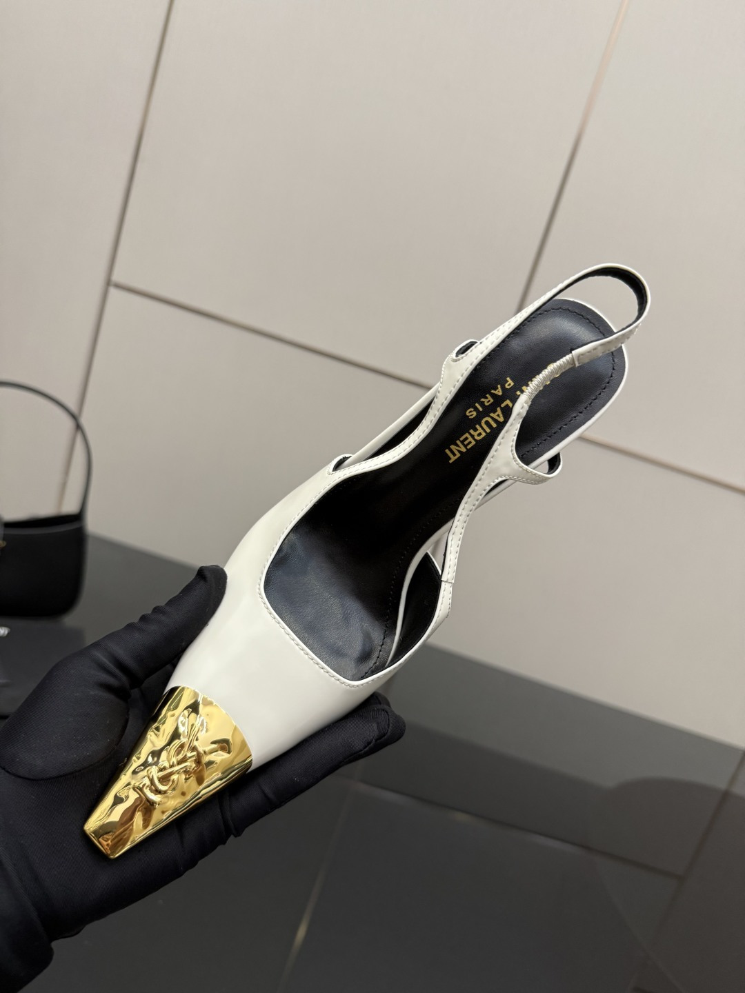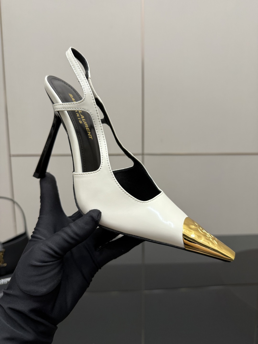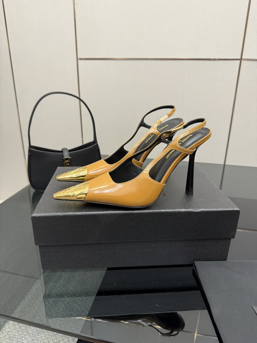 - Polished gold metal toe cap delivers an iconic Saint Laurent couture touch