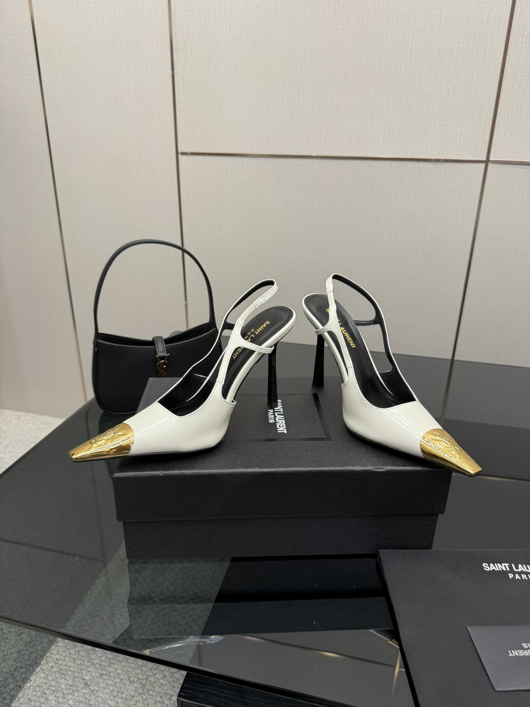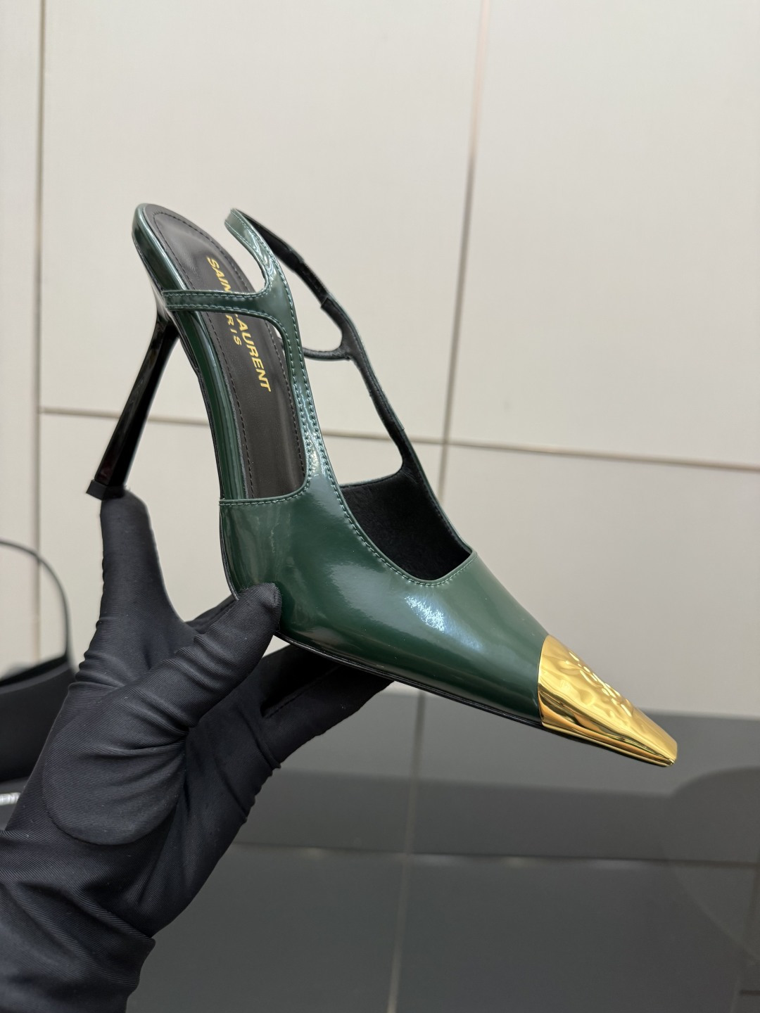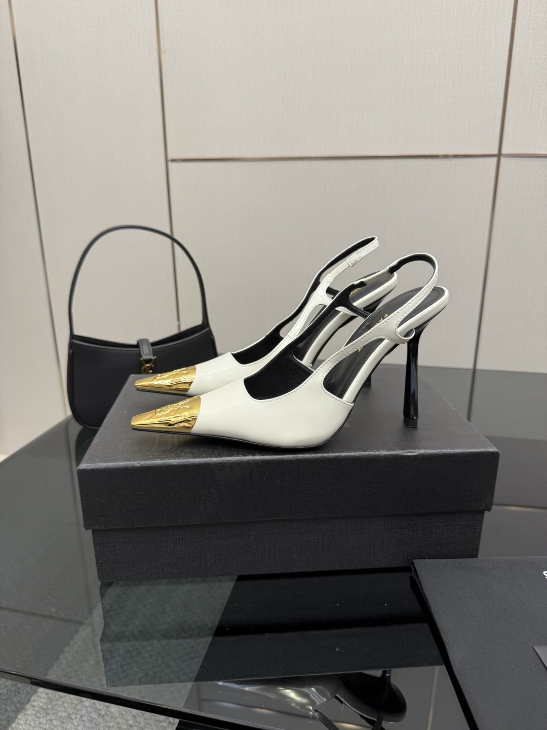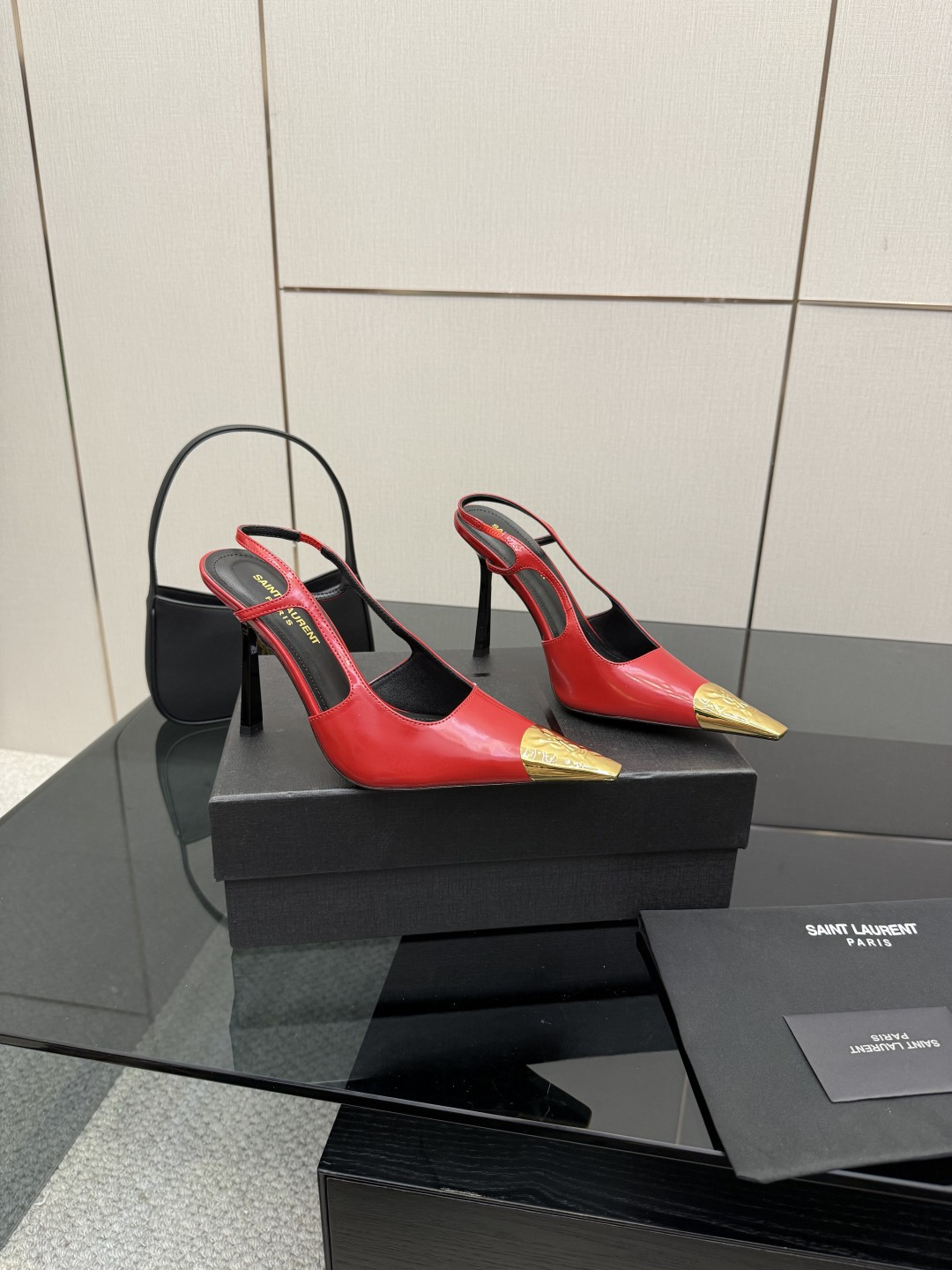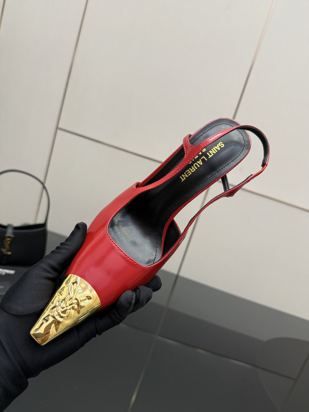 - Polished gold metal toe cap delivers an iconic Saint Laurent couture touch