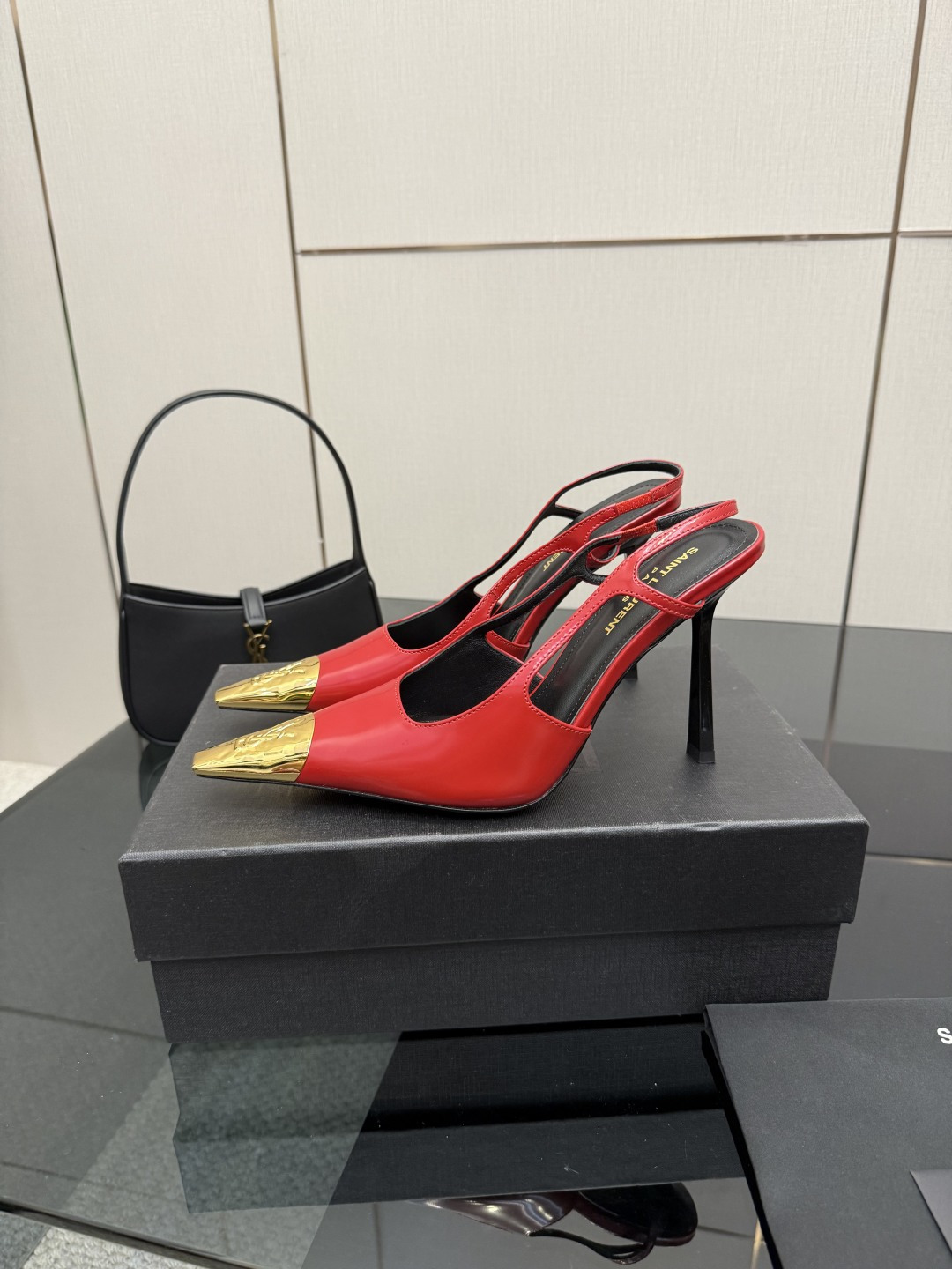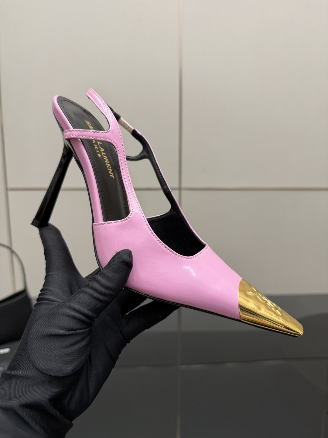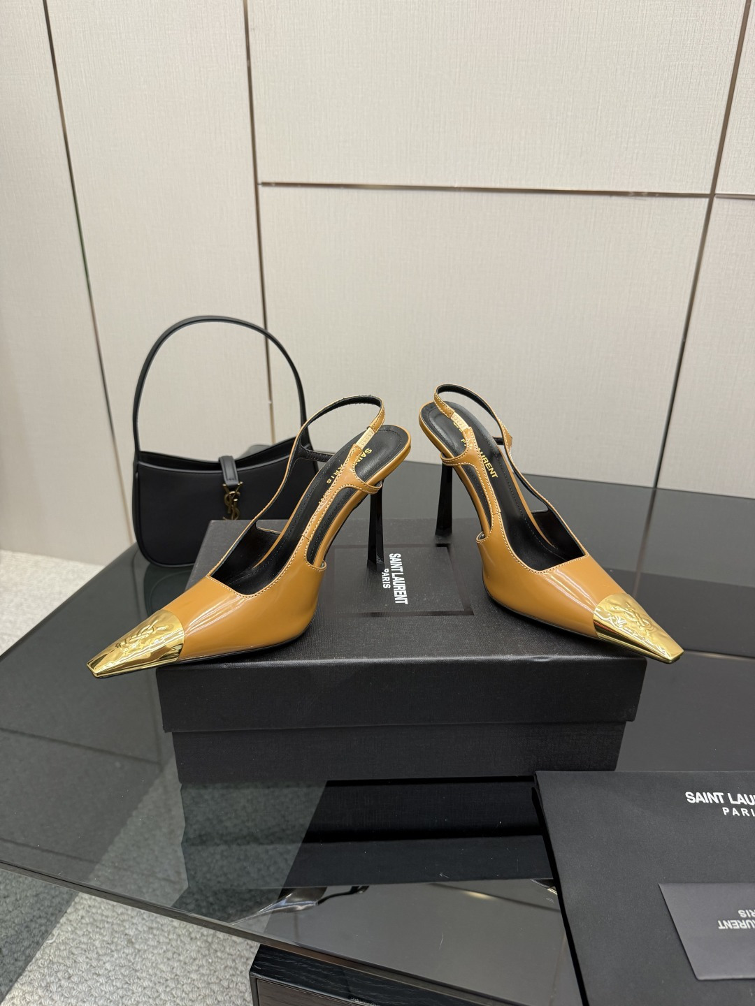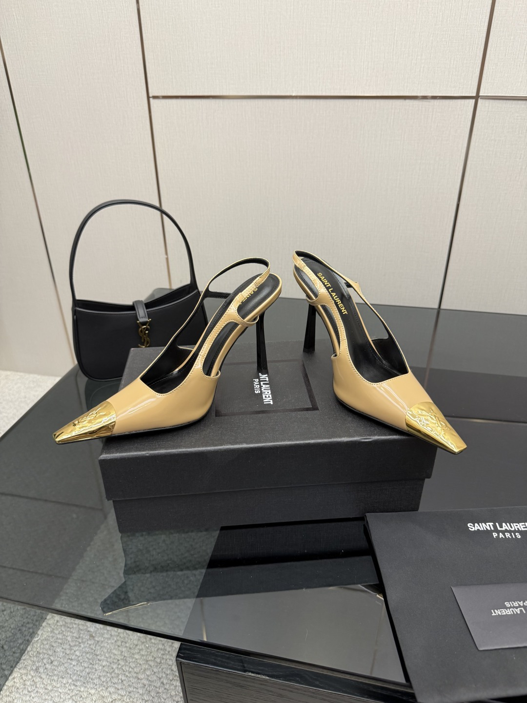 - Polished gold metal toe cap delivers an iconic Saint Laurent couture touch