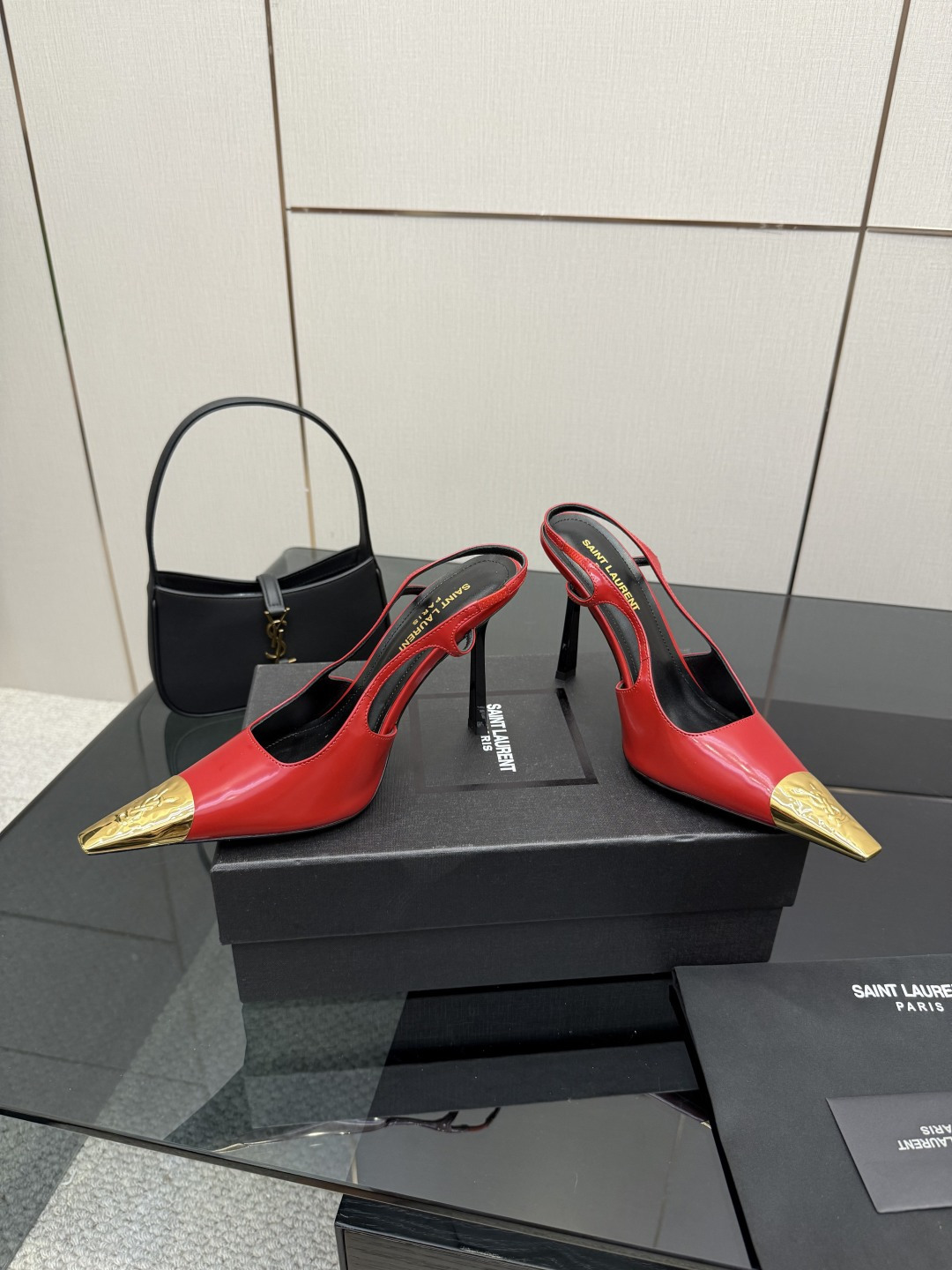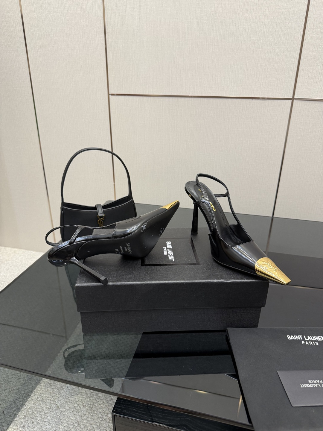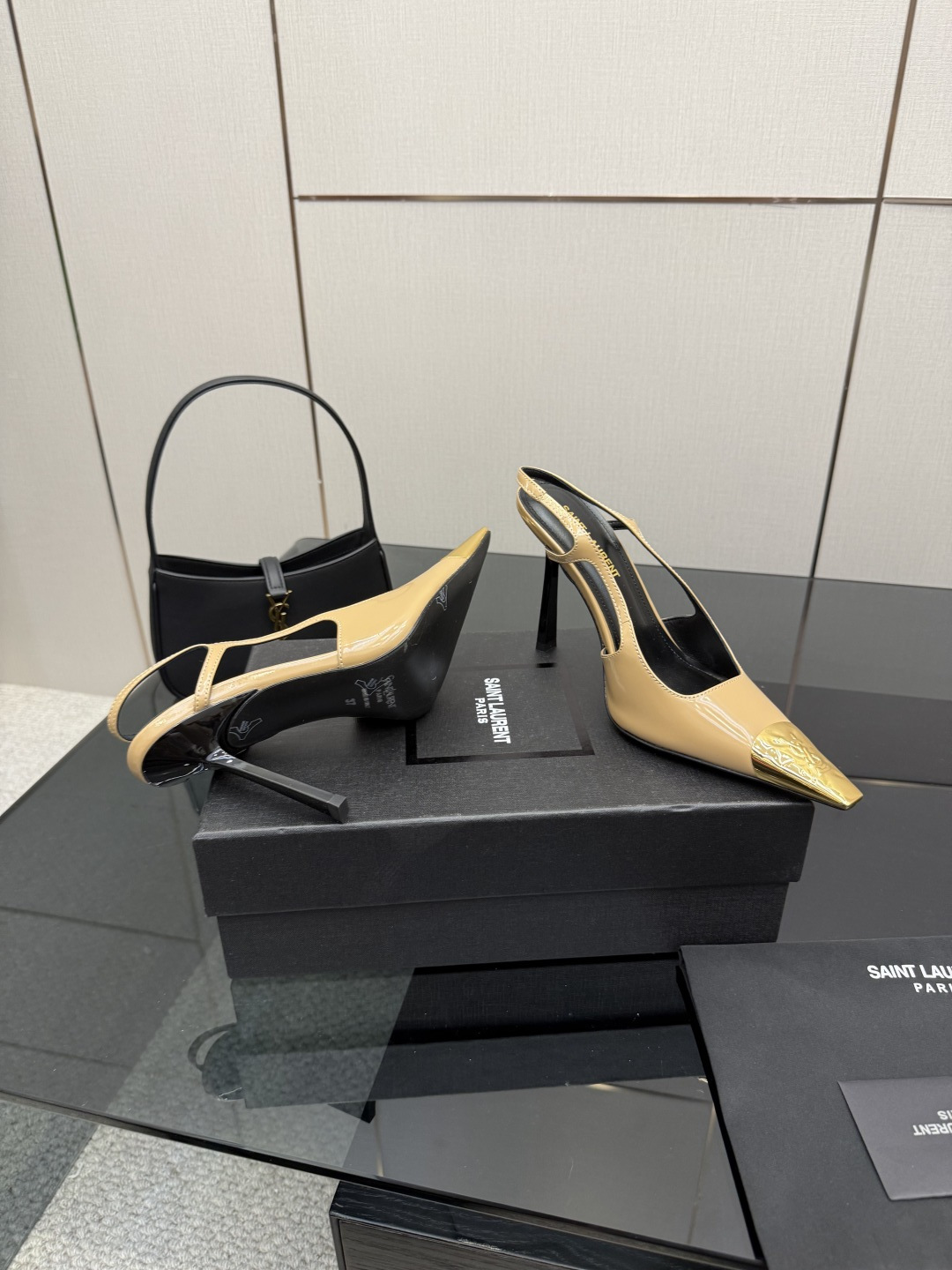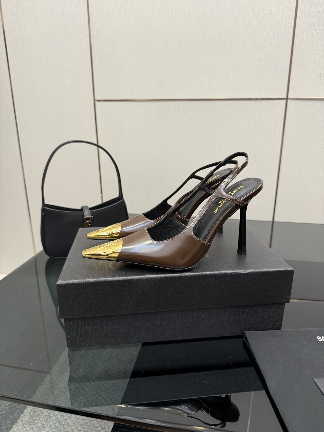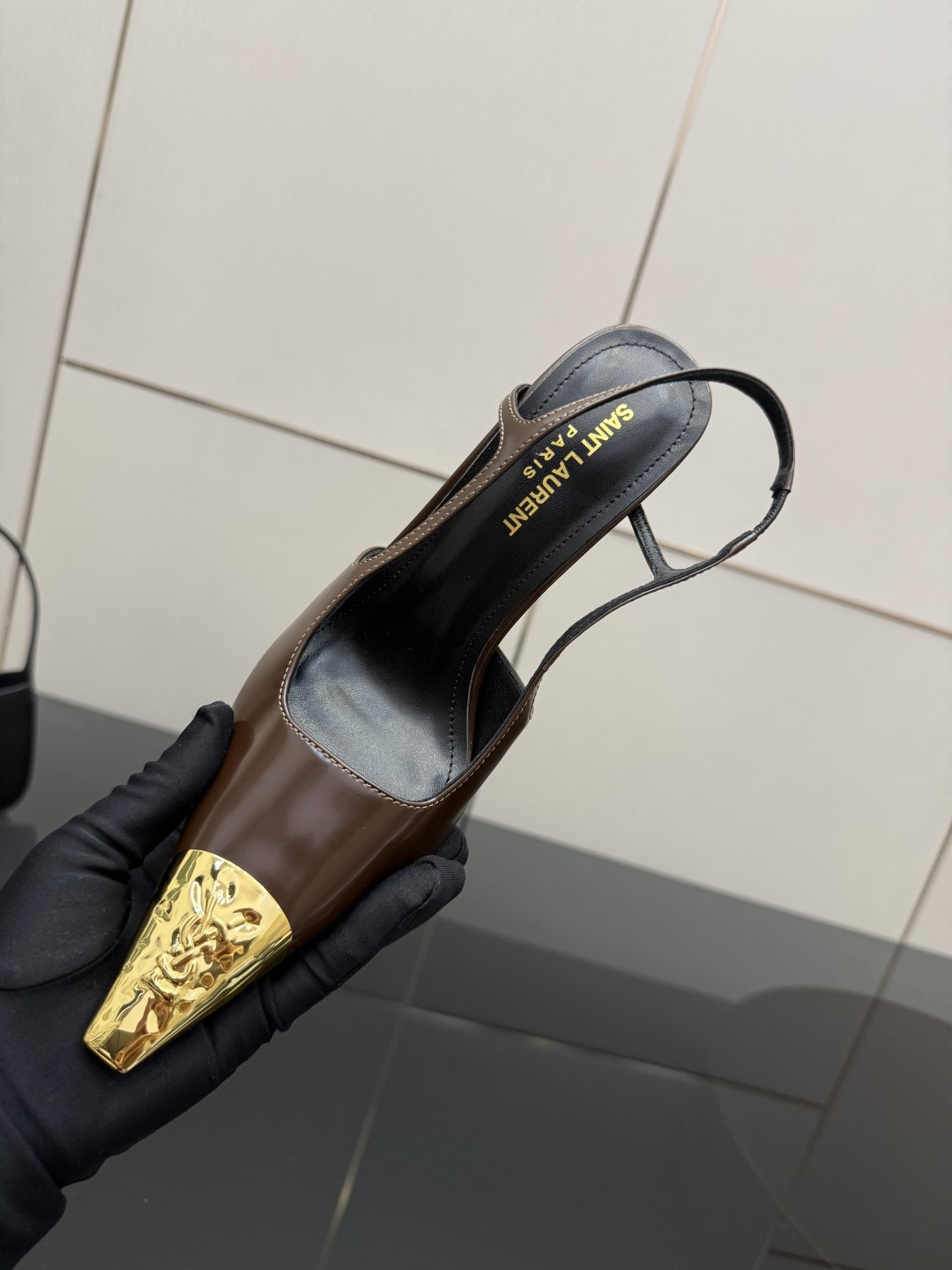 - Polished gold metal toe cap delivers an iconic Saint Laurent couture touch