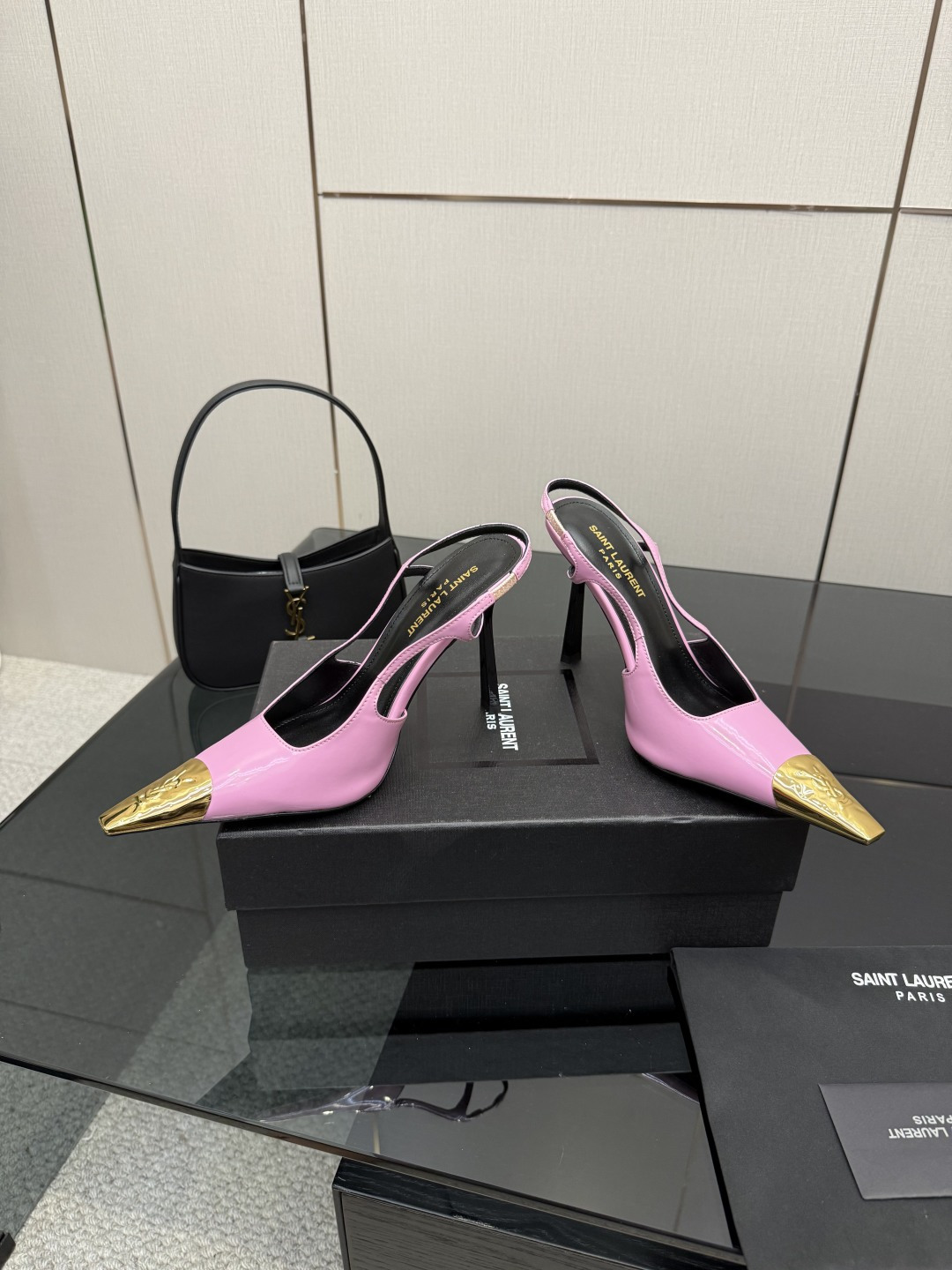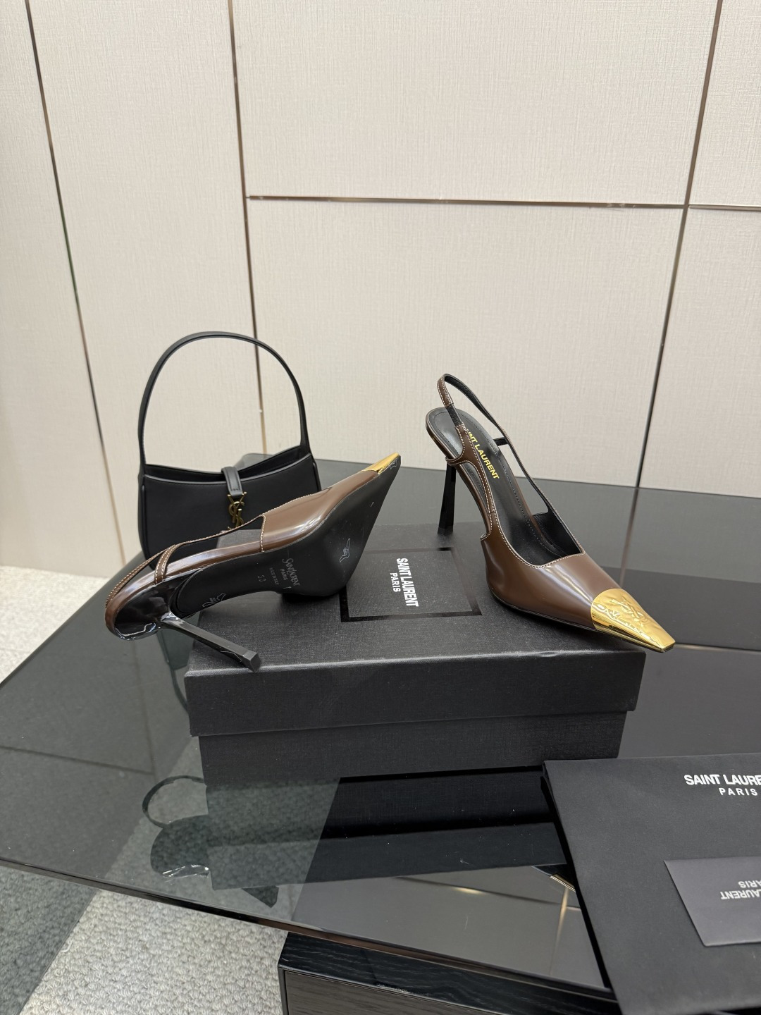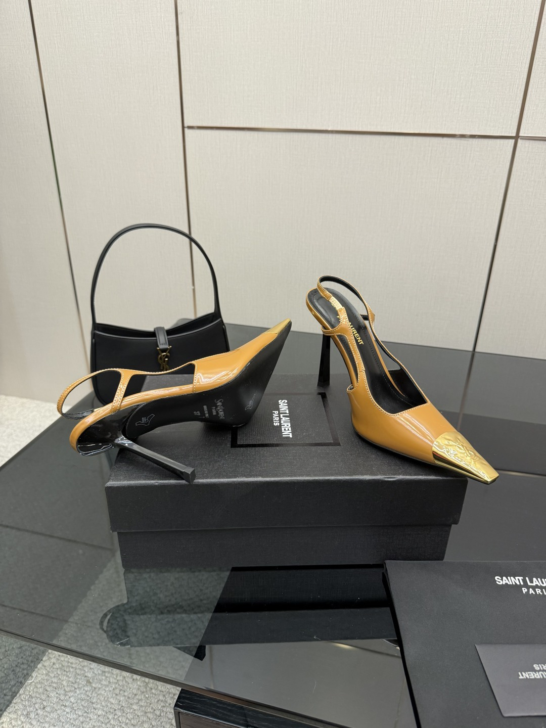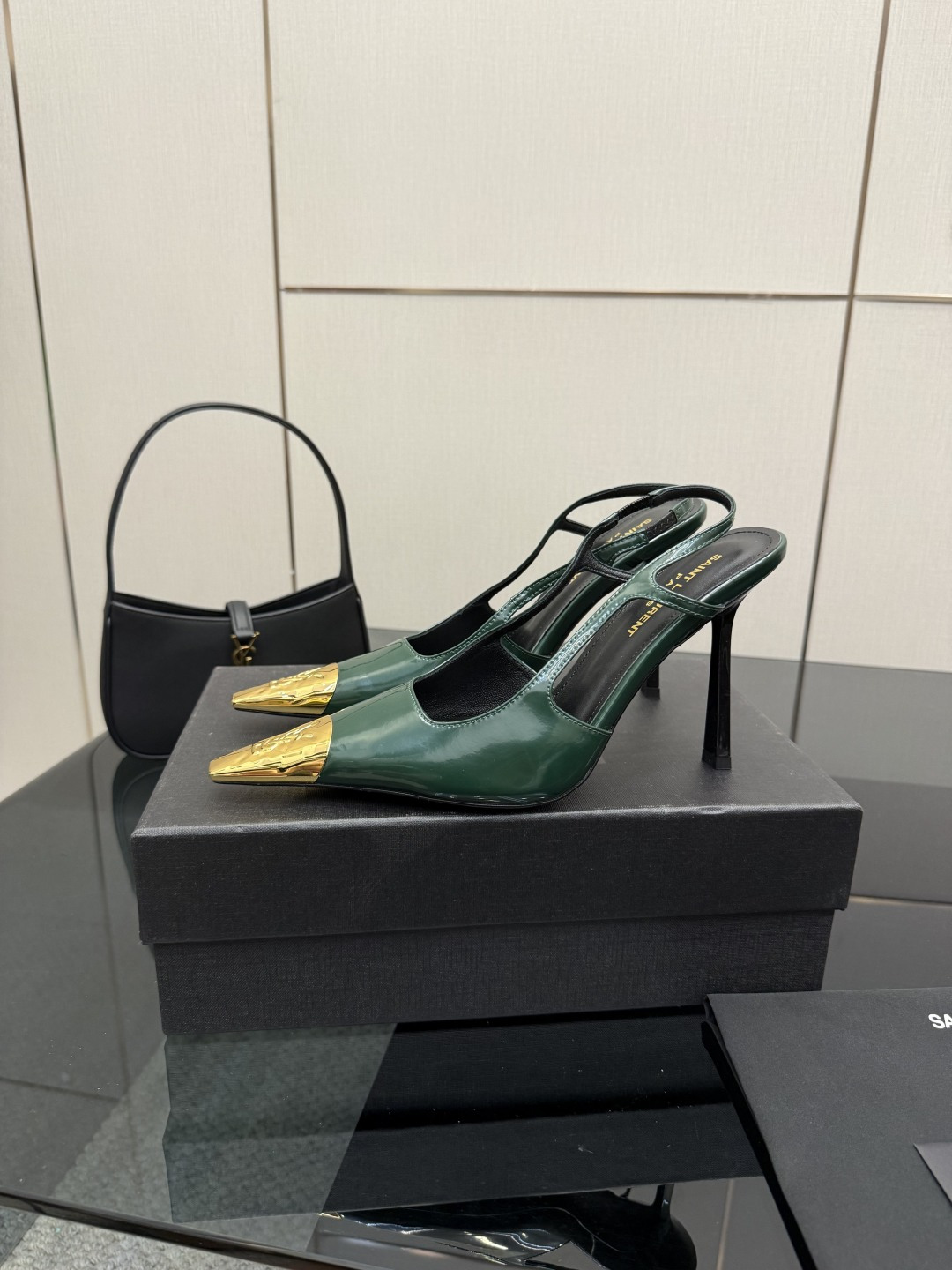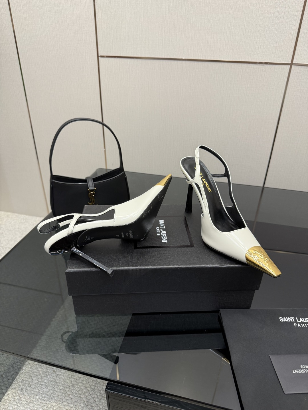 - Polished gold metal toe cap delivers an iconic Saint Laurent couture touch