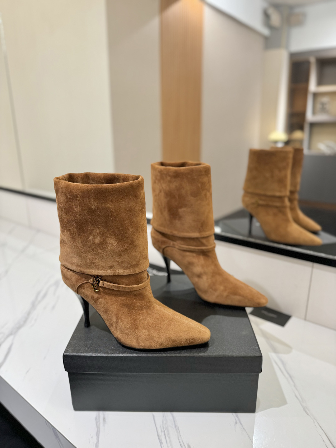 YSL Saint Laurent Vicky 90 Suede Ankle Boots